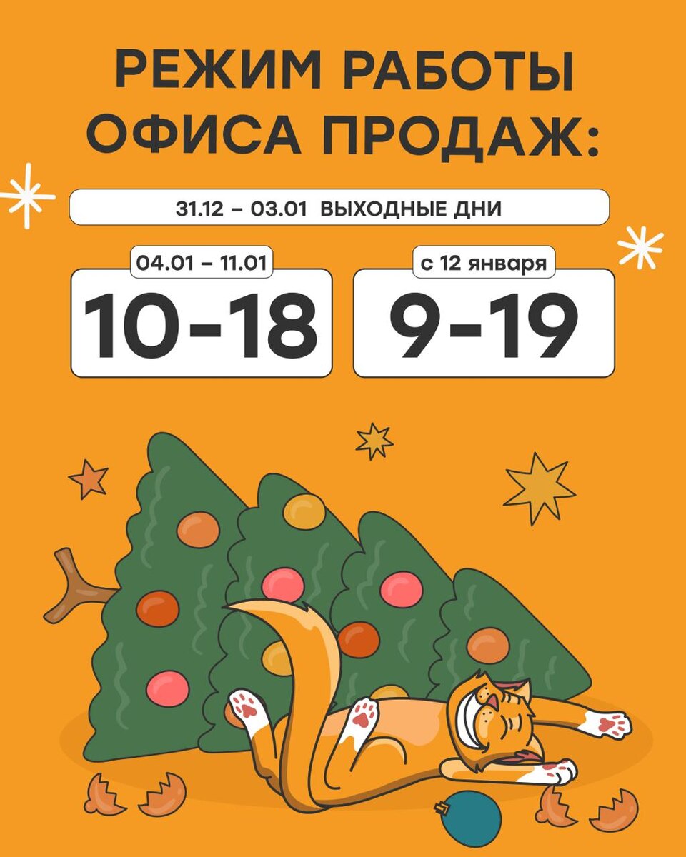 🎄 Что бы вы не планировали на праздники, помните: вам всегда рады в нашем офисе продаж 🧡 Делимся режимом работы офиса продаж в новогодние выходные и предупреждаем: В эту пятницу, 26 декабря, офис продаж работает до 16.00 Назначить встречу с менеджером можно уже сейчас: +7(3452)57-56-26 #жккорней #тюмень #новостройки #новостройкитюмени