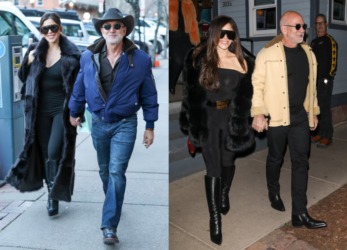 Аспен в этом году стал для Лорен Санчес и Джеффа Безоса привычным зимним маршрутом. Ужин в ресторанах, шопинг, прогулки по курорту. Ничего официального и никакого выхода в привычном светском смысле. Но именно такие появления моментально оказываются в центре внимания, потому что выглядят как продуманная серия, а не как случайные образы для отпуска. Лорен делает ставку на чёрный и остаётся верна своему стилю. В первый вечер она появляется в облегающем чёрном комбинезоне с открытой линией плеч. Посадка по фигуре, сапоги на высоком каблуке, активный ремень и массивные черные очки от Balenciaga. Поверх короткая чёрная шуба с объёмной фактурой. Единственный цвет в образе — насыщенно красный кожаный клатч Bottega Veneta. Он не смягчает образ и не работает как декоративная деталь. Это акцент, который сразу фиксирует внимание. На следующий день Лорен повторяет тот же приём. Чёрный комбинезон, но уже в сочетании с длинным меховым пальто и сапогами на платформе. Это не попытка придумать новый об