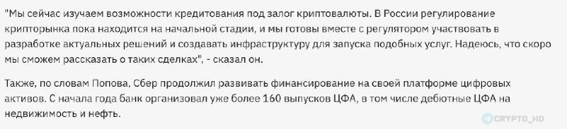 🇷🇺 Сбер может начать выдавать кредиты под залог крипты! - ТАСС