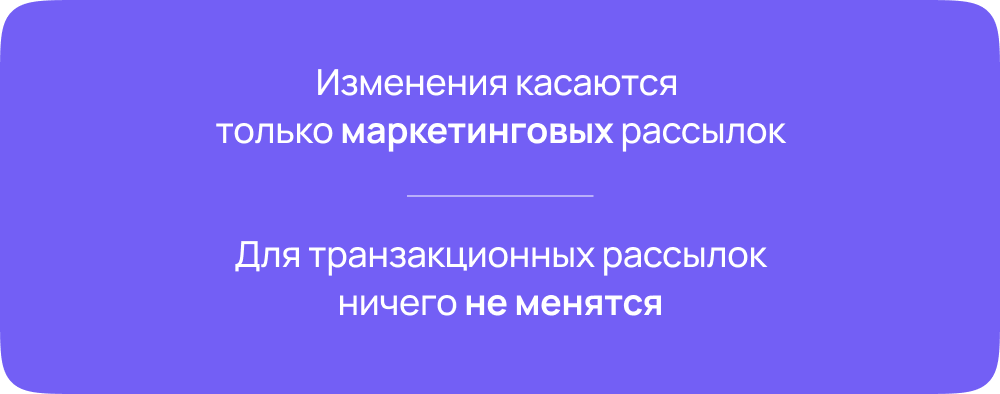 Транзакционные сообщения отправляются как раньше. Они не затрагиваются MM API, правила и процесс работы с ними не меняются.