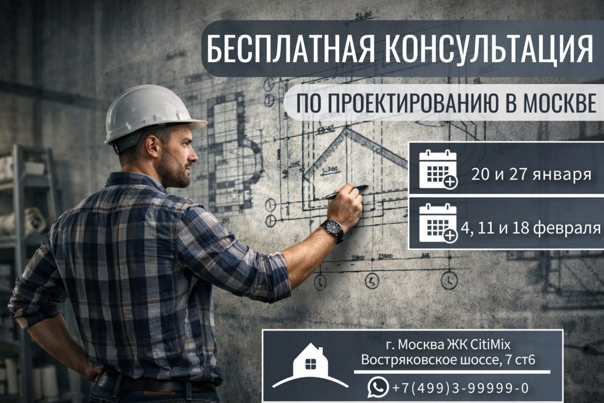 ! Планируете строительство или проектирование? Приглашаем на бесплатную консультацию в нашем офисе в Москве. 📍 Консультация доступна только в Москве 📅 Даты проведения: — 20 и 27 января — 4, 11 и 18 февраля Разберём вашу задачу, подскажем возможные решения и ответим на вопросы. 📞 Запись по телефону: +7 (499) 3-99-999-0 8 (800) 444-01-36 👉 Запишитесь на консультацию в удобную из доступных дат.