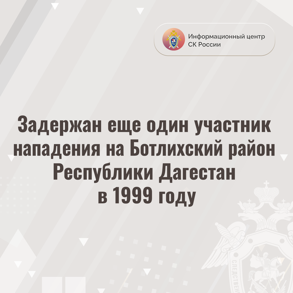 Задержан еще один участник нападения на Ботлихский район Республики Дагестан в 1999 году Главным следственным управлением СК России продолжается расследование уголовного дела о нападении участников бандформирований под руководством Ш. Басаева и Хаттаба в августе 1999 года на Ботлихский район Республики Дагестан. Во взаимодействии с ФСБ и МВД России по подозрению в совершении преступления задержан житель Ставропольского края Алиби Яипкаев. По данным следствия, в составе бандгруппы под общим руководством Басаева и Хаттаба Яипкаев принял активное участие в вооруженном мятеже на территории Ботлихского района Республики Дагестан, в ходе которого в том числе совершил посягательство на жизнь военнослужащих войсковой маневренной группы, принимавших участие в контртеррористической операции и осуществлявших обеспечение общественной безопасности с целью пресечения противоправной деятельности участников бандгрупп, действовавших на территории Республики Дагестан. Ему предъявлено обвинение по ч.2 с