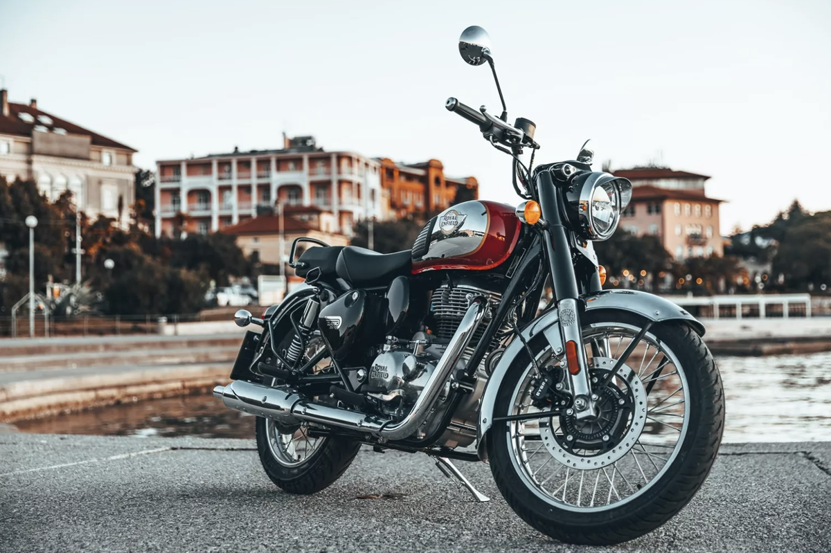 Royal Enfield Classic 650 остаётся одной из самых удачных моделей бренда — сбалансированным сочетанием винтажного стиля, современной инженерии и доступной цены. Не просто «ностальгия на колёсах», а по-настоящему практичный повседневный мотоцикл. 648-кубовый параллельный «твин» с жидкостным охлаждением выдаёт 47 л.с. и 52 Н·м — скромно по цифрам, но с широкой полкой крутящего момента с 2500 об/мин. Мотор тяговитый, бесшумный для своего класса, без излишней вибрации. Шестиступенчатая КПП и лёгкое сцепление делают управление интуитивным — идеально для города и загородных дорог. Стальная рама и телескопическая вилка + двойные амортизаторы с регулировкой preload обеспечивают предсказуемую управляемость. Дорожный просвет и низкое седло (795 мм) — плюс для невысоких райдеров. Хотя подвеска настроена мягко (в угоду комфорту), на высоких скоростях и в резких поворотах чувствуется нехватка жёсткости. Зато на неровном асфальте — никакой «жёсткости за ради жёсткости». Классический силуэт — кругл