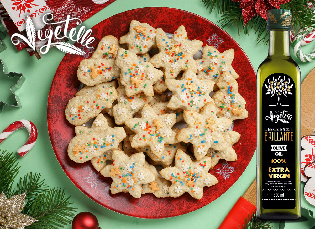 Вкусное и простое печенье для зимних праздников. Вместо сливочного масла тесто для этого печенья готовится на оливковом масле extra virgin. Оно придаёт печенью дополнительный аромат. Идеальное угощение в морозный день!
