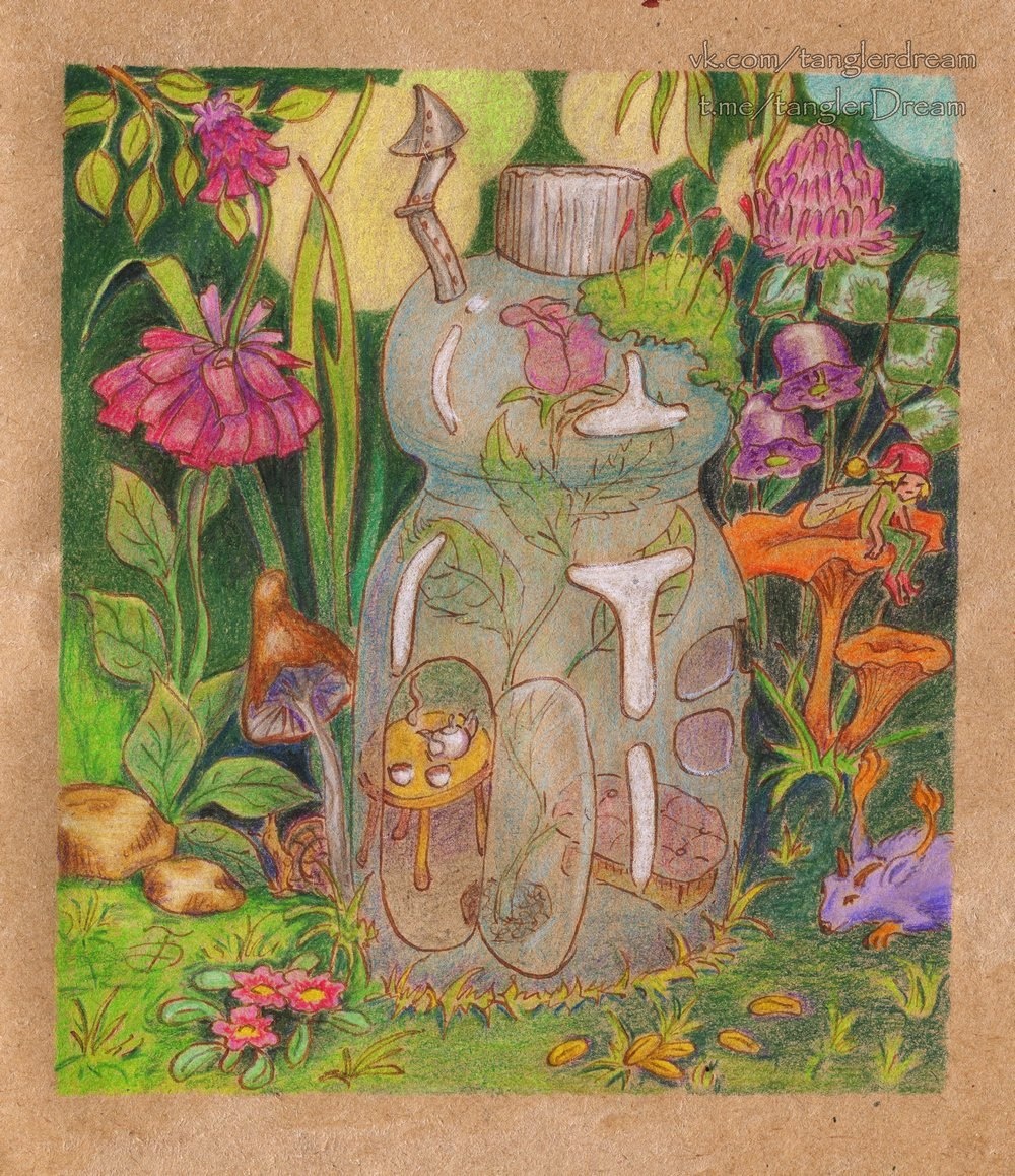 "Крафтики". Это самошивный блокнот с крафт бумагой для почеркушек тушью и карандашами. В нем я без боязни испортить рисую сиюминутные придумки. Появился рисунок из размышлений о засилье пластикового мусора вокруг нас и как бы его использовали в моем сказочном мире😜. В рисунке применила любимую коричневую тушь от Гаммы, перо-макалку и цветные карандаши. Этапы появления рисунка, как всегда, в карусели. Тепла, приятных ароматов и легкости бытия! #tangler #сказочное #оранжерея #пластиковый_мусор #эльф #чаепитие #крафт_бумага #коричневая_тушь #цветные_карандаши #Fairytale #greenhouse #plastic_trash #elf #tea_party #kraft_paper #brown_ink #colored_pencils
