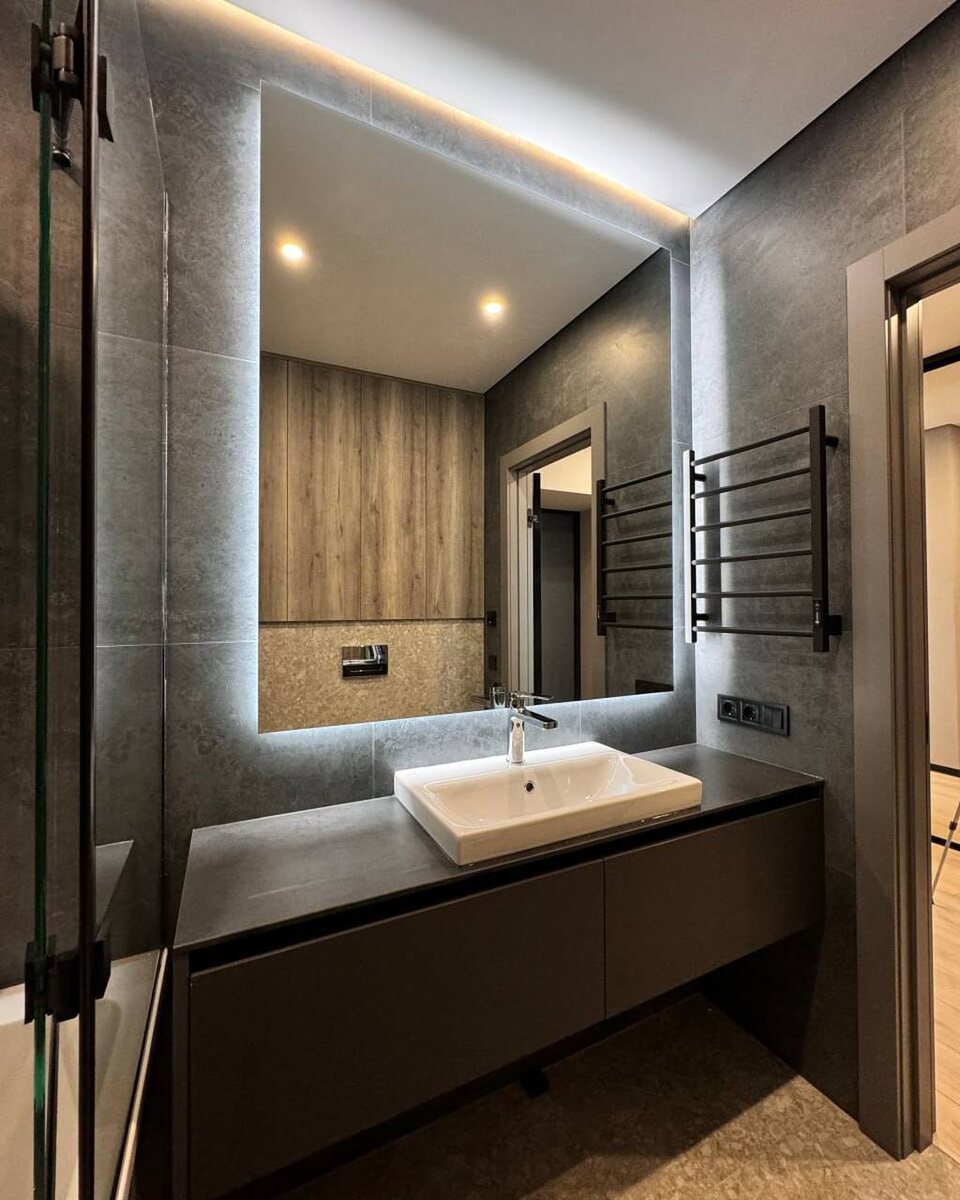 Спокойные оттенки, матовые поверхности и каменная текстура создают ощущение порядка и тишины ✨ Здесь не хочется спешить — хочется замедлиться 🛁 Что важно в этом проекте: ▫️ мебель изготовлена строго под размеры помещения ▫️ скрытая подсветка подчёркивает геометрию ▫️ ничего лишнего — только функционал и стиль ▫️ материалы, которые не надоедают со временем Мы продумываем не просто мебель, а ежедневный комфорт — чтобы утром было приятно начинать день, а вечером расслабляться 🤍 Хочешь ванную, в которой всё продумано до мелочей? Пиши в WhatsApp 📲 👉 https://wa.me/+79955009461
