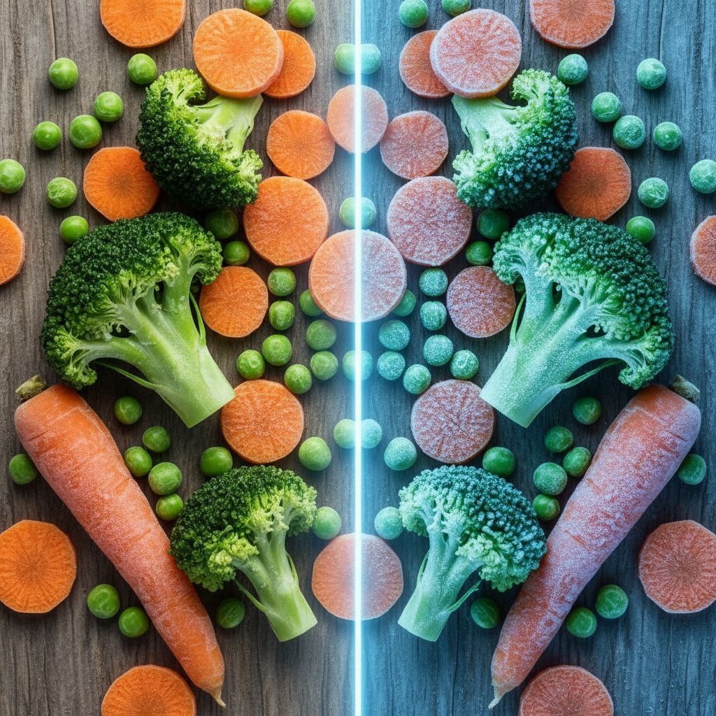 Но есть нюанс. Вышло исследование, которое переворачивает наши представления о пользе замороженных овощей. Витаминов в них не меньше, чем в свежих, а иногда даже больше. Звучит неплохо, правда? Давайте посмотрим внимательнее. Университет Калифорнии в Дэвисе изучил 8 популярных овощей и фруктов: брокколи, шпинат, морковь, кукуруза, горошек, стручковая фасоль, черника, клубника. Проверяли содержание витаминов в замороженных и свежих, в разные моменты времени. Результат? Замороженные продукты не проигрывают свежим по питательности, а в некоторых случаях даже выигрывают. Витамины B2 и C в замороженных овощах сохраняются так же или лучше, чем в свежих. Витамин E вообще лучше сохраняется при заморозке. Минералы (кальций, магний, цинк, медь, железо), клетчатка и антиоксиданты тоже на месте. Замороженная брокколи содержит больше рибофлавина, чем свежая. Замороженный горошек богаче бета-каротином. Но погодите. Кто платил за исследование? Frozen Food Foundation. Да, фонд индустрии замороженн