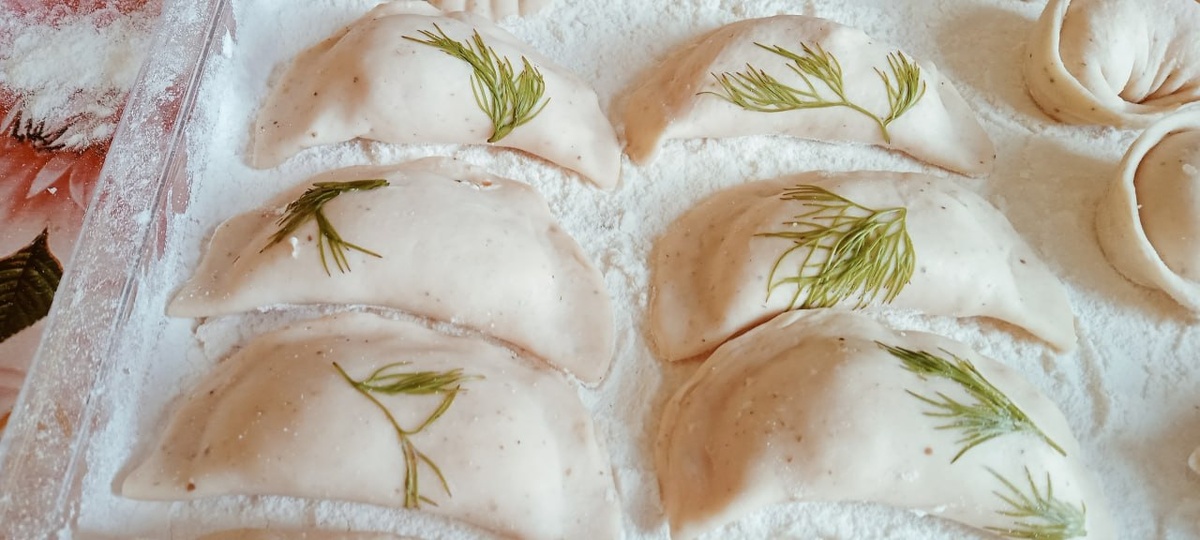 ✨ Идеальны для подачи с бульоном. 🧾 Тесто • 1 ст. муки • 1 ч. л. соли • щепоть молотого кориандра • чуть асафетиды • 0,5 ст. горячей воды Смешать сухие компоненты, добавить воду — замесить тесто. Завернуть в плёнку на 30–60 минут, затем подмесить до упругости. Раскатать толщиной 2 мм, вырезать сочни Ø 6 см. 🥔 Начинка • 500 г густого картофельного пюре • 2 ст. л. топлёного масла • 0,6 ч. л. соли • 1 ч. л. чёрного перца • чуть асафетиды • 0,5 пучка укропа Смешать всё руками до однородности. 👉 В центр сочня выложить начинку, слепить пельмень «как вареник». На каждый сочень положить маленький листик укропа и слегка прокатать скалкой — он красиво «впечатается» в тесто 🌿 🍲 Бульон • 2 л воды • 2 ч. л. соли • 1 лавровый лист • 0,5 ч. л. семян укропа • 0,5 пучка кинзы Довести до кипения, добавить кинзу. Варить пельмени при активном кипении 2 минуты. 🥣 Подавать с бульоном, свежей зеленью и чёрным перцем. Понравился рецепт — поставь ❤️ #пельмени@UsefulDelights