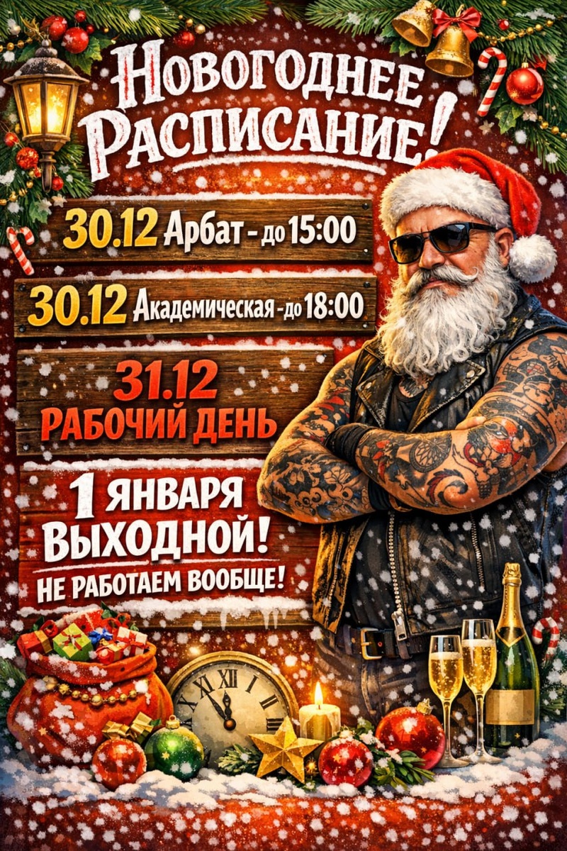 Но по настроению ЁЛКА: мишура, шум, смех и тот самый день, когда у админов включается «новогодний режим», а у мастеров, «мы тоже умеем отдыхать (иногда)». Важно: это не “мы закрылись и ушли в закат”. 31 декабря работаем как обычно, так что если не успели раньше всё ещё можно залететь в последний вагон. И чтобы без сюрпризов по адресам: 30.12 Арбат до 15:00 30.12 Академическая до 18:00 1 января выходной, не работаем вообще. #миртату #татуМосква #пирсингМосква #корпоратив #новыйгод #графикработы #Арбат #Академическая #записьнатату #записьнапирсинг
