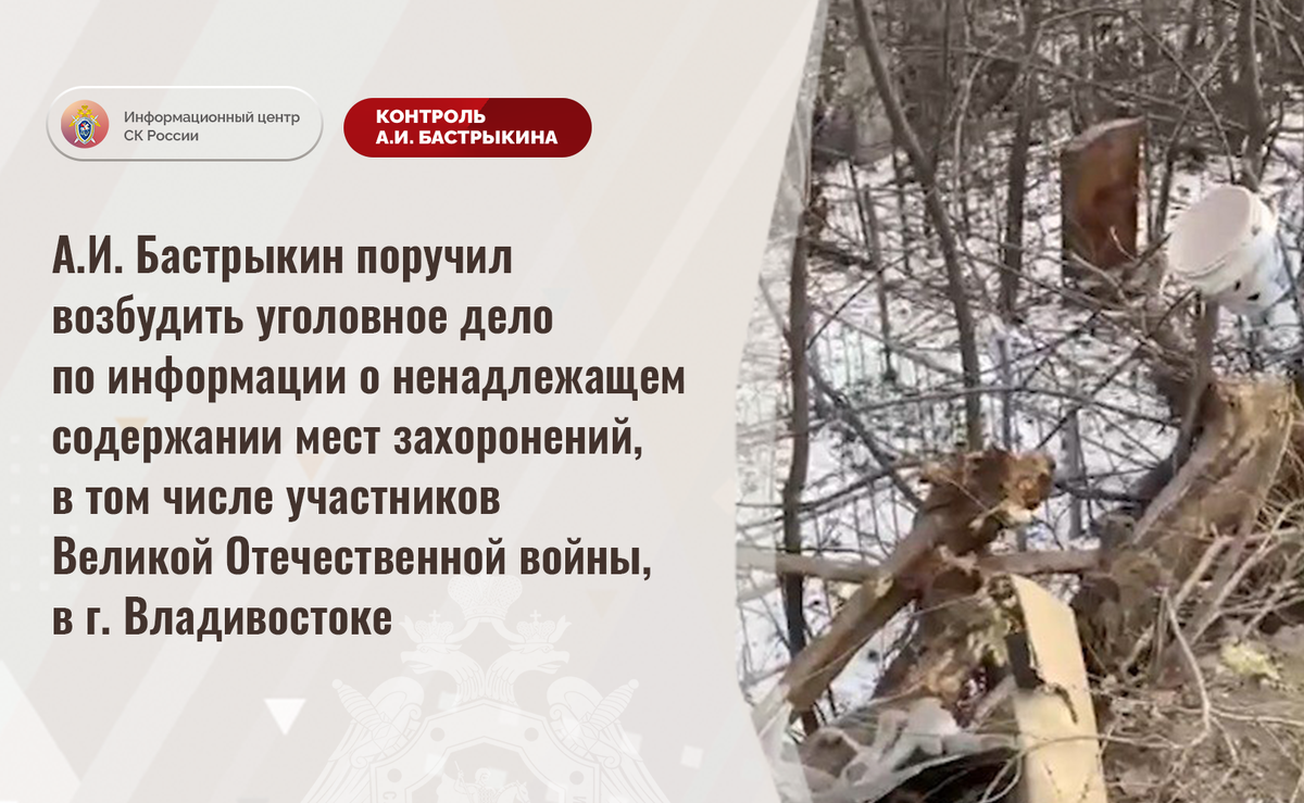 А.И. Бастрыкин поручил возбудить уголовное дело по информации о ненадлежащем содержании мест захоронений в г. Владивостоке