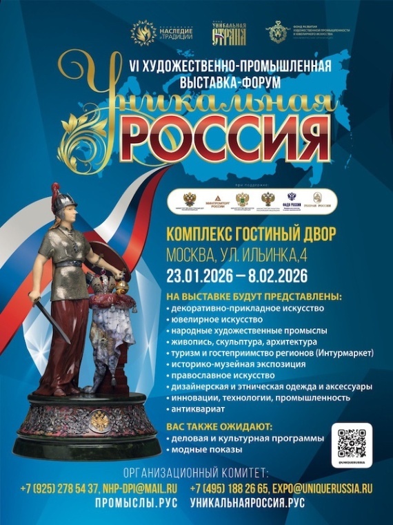 С 23 по 25 января 2026 года в самом сердце Москвы — в Гостином дворе — пройдёт крупнейшая в России выставка традиционных искусств. Более 4000 мастеров и ремесленников из 77 регионов, от Калининграда до Камчатки, представят уникальные изделия, ремёсла, костюмы, музыку и гастрономию на площади свыше 10 000 м².