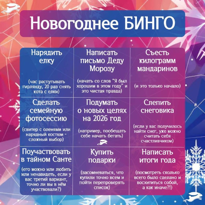 🥳 Отмечайте, что уже успели сделать в предпраздничной суете, чтобы поймать новогоднее настроение. А если в ваших планах на Новый год есть пункт «начать бегать» — помните, мы рядом и будем рады помочь начать это делать с удовольствием 💜 Заявки можно оставлять уже сейчас и получить в подарок Памятку начинающего бегуна ⤵️ • Москва • Санкт-Петербург • Онлайн Делитесь в комментариях, что у вас строго обязательно успеть перед праздниками? 🍿 посмотреть Один дома/Гарри Поттер, ⛸️ покататься на коньках/лыжах, 🎶 составить новогодний плей-лист и слушать его на повторе всю неделю перед праздником, и т.д. Давайте заряжаться праздничным настроением вместе 🎄