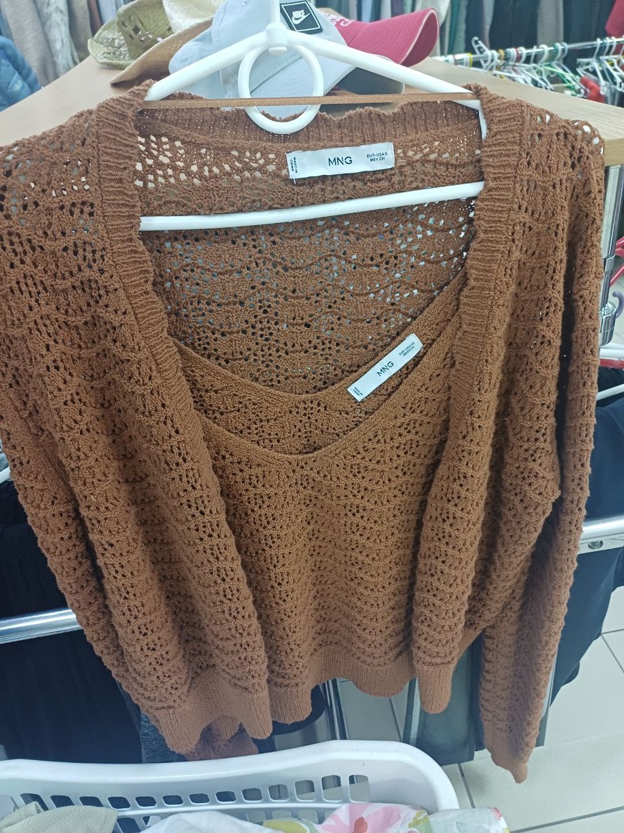 Перед новогодними праздниками секонд-хенды не привозят новый товар, но распродажа длится две недели и дольше. Даже в таких условиях можно найти интересные и необычные вещи. Цена дня- 2 500 рублей. Красивый, вязанный комплект светло-коричневого цвета майка и джемпер от Mango - испанская компания по дизайну, производству и продаже одежды. Очень красивый , женственный комплект , будет красиво смотреться как с юбкой , так и с брюками. Размер- Xs\S. Производство- Китай. Теплый жилет в коричнево-бежевых оттенках с орнаментом на груди от John Baner - немецкий бренд, который выпускает повседневную одежду. Красивая вещь , которую можно стилизовать в разных стилях . Размер- L. Укороченный топ в мраморной расцветке от PrettyLittleThing - британский ритейлер быстрой одежды, который продаёт женскую одежду, обувь, аксессуар. Подойдет на лето и теплую осень. Размер- 8, стоимость-162 рубля. Белая жилетка на пуговках от Threadbare - британский бренд одежды, специализирующийся на производстве стильн