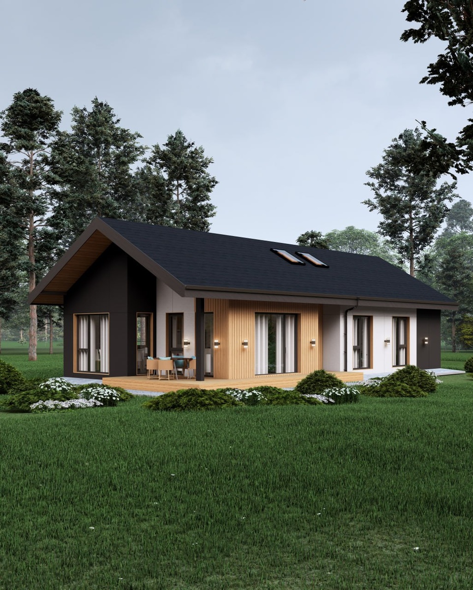 СМС-98 | Общая площадь: 131 м² | Полезная площадь: 110 м² Вы заходите в дом и попадаете в тамбур. Справа - зона для хранения вещей и обуви. В центре дома расположена кухня-гостиная. Просторная зона с диваном, большим столом и выходом на террасу - здесь есть всё, чтобы вы чаще проводили время с семьей и друзьями. Зона готовки расположена далеко от спален. За счёт этого запахи и звуки готовки не доходят до жилых комнат, где могут отдыхать или работать ваши близкие. В спальном блоке две детские и родительская спальня с собственным санузлом. Техпомещение объединено с прачечной. Всё, что связано со стиркой и хранением бытовых вещей, находится в одном помещении и не занимает пространство в других комнатах. В общем санузле предусмотрены ванна и душ. Подробнее о проекте, сроках и стоимости строительства - на нашем сайте.