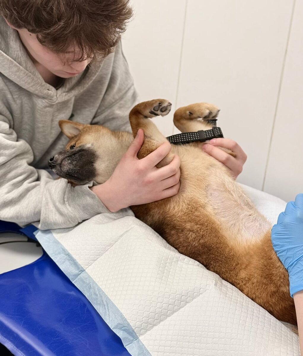 Собаку Майко в возрасте 2 месяцев приобрели у заводчика и уже через 2 недели владельцы заметили странное поведение у собаки: начала ходить вдоль стен, прятаться под машину, в кусты. В других клиниках Майко ставили различные диагнозы, в том числе слепоту. Но только обратившись в «Ветдоктор» был поставлен верный диагноз Порто-системный шунт (ПСШ). Про данную аномалию мы уже не раз выкладывали пост, к сожалению, пациенты с ПСШ регулярно появляются в нашей клинике. ✅ПСШ-аномалия развития сосудов, из-за которой значительная часть крови, оттекающая от желудочно-кишечного тракта, попадает в системный кровоток, минуя печень. Из-за этого в крови сильно повышается концентрация токсичных (в первую очередь для мозга) веществ, которые в норме должны «обезвреживать» печень. ✅Диагностика: анализы крови, КТ. ✅Лечение ПСШ: хирургическое и к нему требуется 2-3 недельная подготовка, которая заключается в назначении определенной диеты и приеме специальных препаратов. Когда Майко была готова ей была в