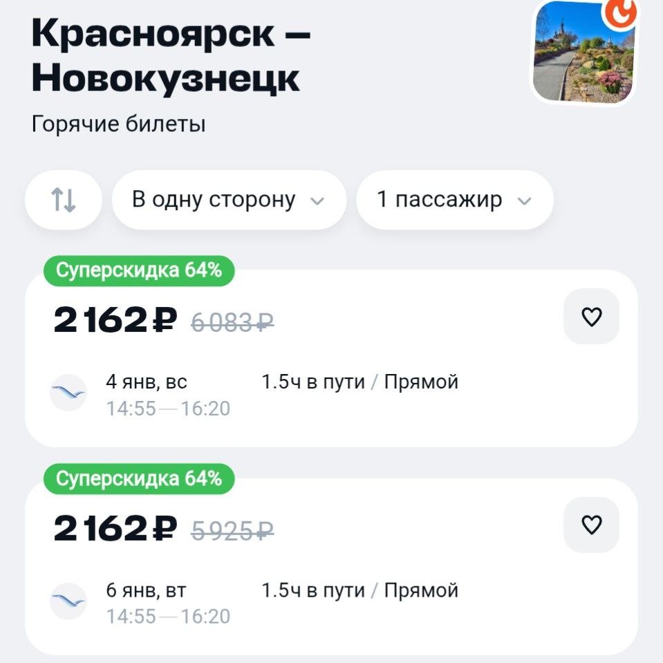 📌 В Новокузнецк Геш 4 или 6 января за 2100₽ с багажом! А значит и снарягой! https://aviasales.tpm.lv/317VSuxe 📌 В Горно-Алтайск такая же цена, но 11 января! https://aviasales.tpm.lv/VJegvnFd #NOZ #RGK @KJA