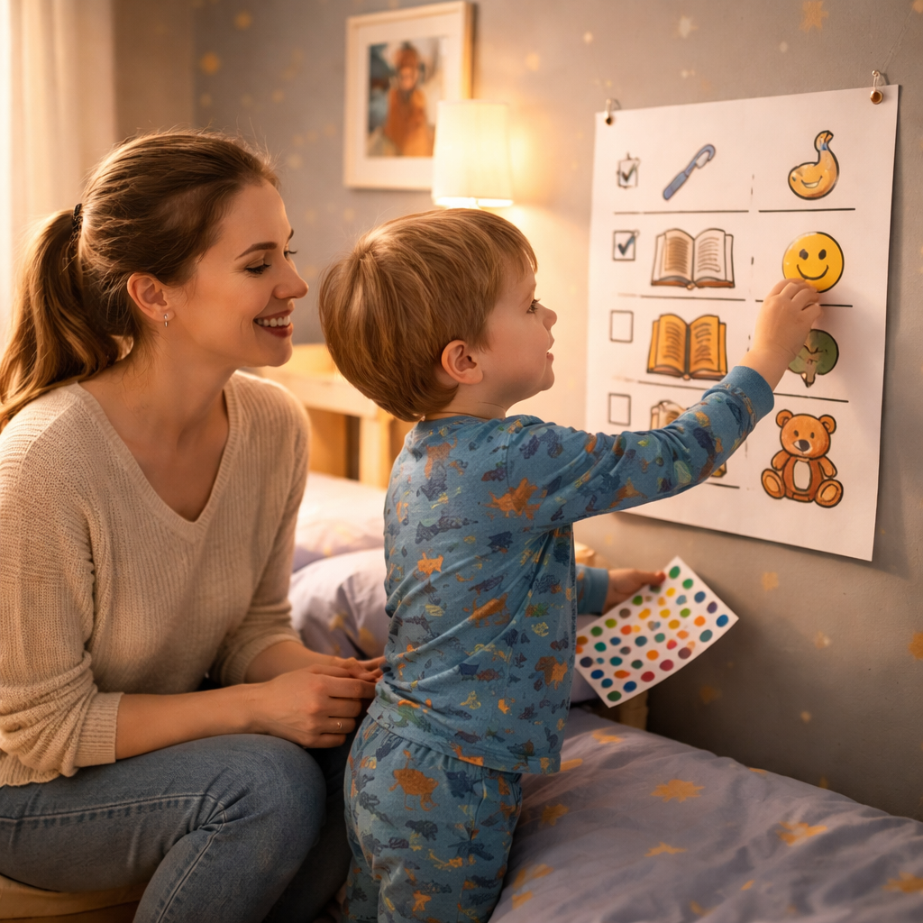 Я честно верила, что у нас всё под контролем. Ну, сколько там той рутины? Пижама, зубы, книжка, обнимашки, баиньки. Пять шагов. Простых. Одинаковых каждый вечер. Но знаете, кто не считает это простым? Миша. Трёхлетний мастер откладывания сна. В один вечер он просил воды — трижды. Потом — сменить одеяло, найти правильную пижаму (в которой «сон лучше») и почитать ту самую книжку, которую он сам спрятал за шкафом. В итоге уложились в 22:20. Я молча сидела в темноте и гуглила: «что делать, если ребёнок устраивает шоу перед сном». И наткнулась на одну статью. Там всё было очень логично: детям нужна не просто последовательность, а визуальная опора. Что-то, что они могут контролировать, чтобы не контролировать маму. Таблица. Картинки. Порядок действий. Гениально в своей простоте. На следующий день мы с Максом рисовали зубную щётку, книжку и лампу. Миша клеил наклейки. Даша грызла угол. И вот вечер. Вместо торгов и театра — чек-лист. Вместо «а я ещё не хочу» — «давай я сам покажу, что дальше».