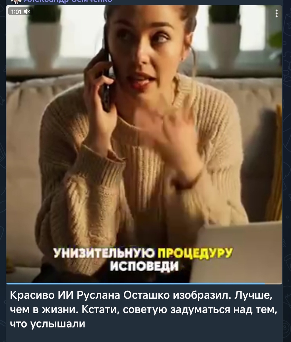 Руслан Осташко разместил пост со своим видео. Он в кадре был в белом свитере с гербом СССР. Забавный вид с учетом того как он живет и где работает.