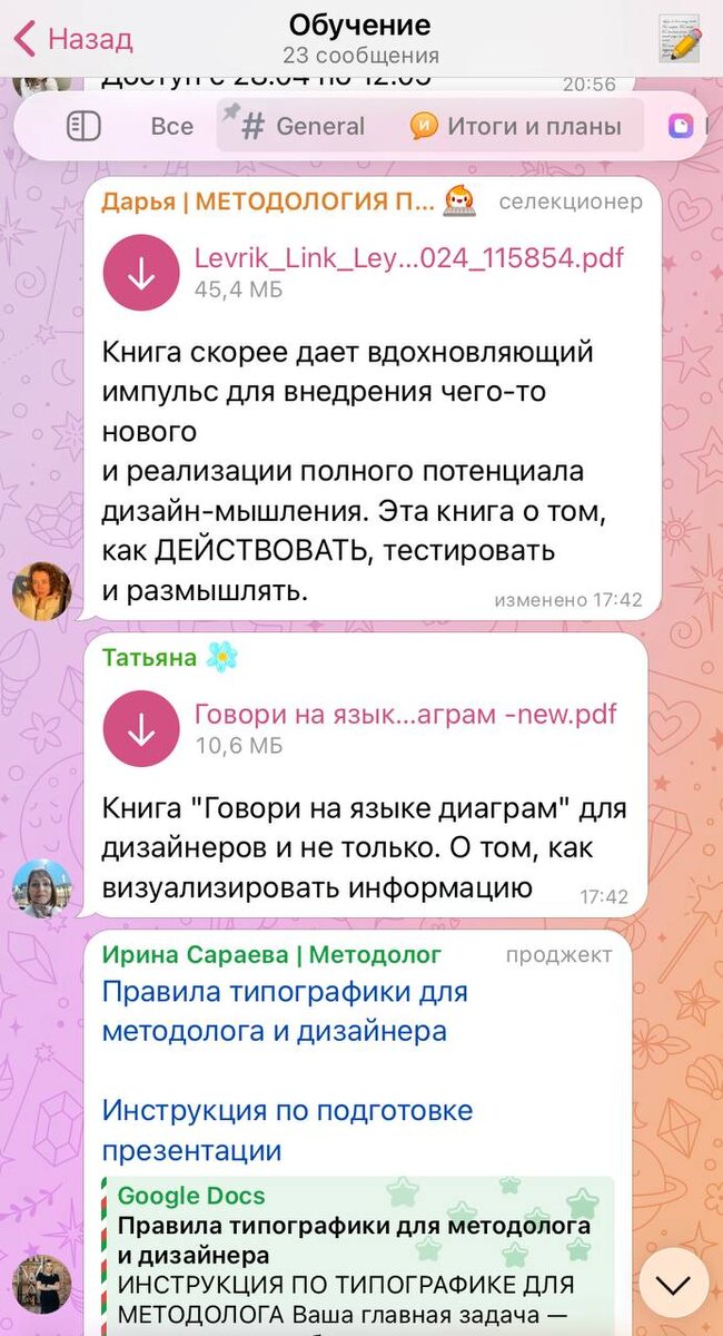 На самом деле, секрет — в культуре постоянного обмена знаниями 🙌🏻 У нас в командном чатике есть живой топик «Обучение», который работает как библиотека и мозговой штурм одновременно 🧠 Там можно найти книги, чек-листы, инструкции, находки друг друга по абсолютно разным темам, которые нужны методологу в работе 🥹 Как это влияет на курсы наших заказчиков? Очень даже напрямую 🙂 Всей командой мы смотрим в одну сторону и говорим на одном языке — даже в мелочах вроде отступов на слайдах — проект идёт быстрее, а результат становится целостным 🙌🏻 Прикрепляем для вас одну из книг, на основе которой написан наш регламент для дизайнеров, чтобы на Новый год можно было почитать полезности 🤝👇🏻