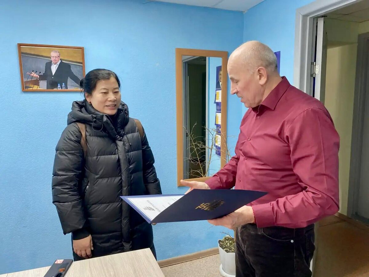 Β«ΠΡ ΡΠ΅ΡΠΈΠ»ΠΈ Π²ΡΡΠ°Π·ΠΈΡΡ Π±Π»Π°Π³ΠΎΠ΄Π°ΡΠ½ΠΎΡΡΡ Π½Π°ΡΠΈΠΌ ΠΊΠΈΡΠ°ΠΉΡΠΊΠΈΠΌ Π΄ΡΡΠ·ΡΡΠΌ ΠΈ Π²ΡΡΡΠΈΠ»ΠΈ ΠΈΠΌ ΠΏΠΎΡΠ΅ΡΠ½ΡΡ Π³ΡΠ°ΠΌΠΎΡΡ Π·Π° ΠΏΠΎΡΡΠΎΡΠ½Π½ΠΎΠ΅ ΡΠΎΡΡΡΠ΄Π½ΠΈΡΠ΅ΡΡΠ²ΠΎ ΠΈ ΠΏΠΎΠ΄Π΄Π΅ΡΠΆΠΊΡ. ΠΠ΄Π½Π° ΠΈΠ· ΠΏΡΠ΅Π΄ΡΡΠ°Π²ΠΈΡΠ΅Π»ΡΠ½ΠΈΡ ΠΊΠΈΡΠ°ΠΉΡΠΊΠΎΠΉ ΡΡΠΎΡΠΎΠ½Ρ, ΠΊΠΎΡΠΎΡΡΡ ΡΡΡΡΠΊΠΈΠ΅ Π½Π°Π·ΡΠ²Π°ΡΡ ΠΠ½Ρ, ΡΠΎ ΡΠ²ΠΎΠΈΠΌ ΠΌΡΠΆΠ΅ΠΌ Π²ΡΠ΅Π³Π΄Π° Ρ Π½Π°ΠΌΠΈ Π½Π° ΡΠ²ΡΠ·ΠΈ ΠΈ Π²Π½ΠΎΡΠΈΡ ΠΎΡΠΎΠ±ΠΎ ΡΠ΅Π½Π½ΡΠΉ Π²ΠΊΠ»Π°Π΄. ΠΡ Π³ΠΎΡΠ΄ΠΈΠΌΡΡ ΡΠ°ΠΊΠΈΠΌΠΈ ΡΠΎΡΠ·Π½ΠΈΠΊΠ°ΠΌΠΈ!Β» - ΡΠΊΠ°Π·Π°Π»Π° Π΄Π΅ΠΏΡΡΠ°Ρ ΠΠΎΡΠ΄ΡΠΌΡ ΠΠΈΡΠΎΠ±ΠΈΠ΄ΠΆΠ°Π½Π° ΠΎΡ ΠΠΠΠ Π’Π°ΡΡΡΠ½Π° Π‘Π»ΡΡΠΊΠ°Ρ.