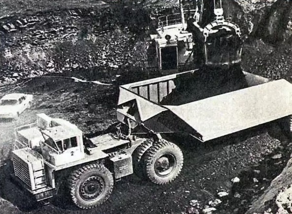 Наверняка вы видели огромную технику, которая работает на угольных разрезах или подобных условиях. 26 декабря 1973 года «родился» один из этих гигантов – автопоезд-углевоз «БелАЗ-7420-9520». Длиной 19 метров и мощностью более 2400 л. с. (в машине два дизельных двигателя по 1200 л. с. каждый) «БелАЗ-7420-9520» за раз вывозил 120-130 тонн угля, что превышало норму четырех железнодорожных вагонов. Модель выпускали до 1985 года, за это время собрали всего 50 единиц. Увы, гиганты не прижились. У них было немало проблем. Во-первых, это была принципиально новая техника, завод только учился ее собирать, а в карьере – использовать. Были трудности с качеством комплектующих: самосвалы регулярно ломались, а ремонтировать их почти никто не умел, да и инструмента для таких «здоровяков» не было. Водителей, конечно, также сильно не хватало: слишком уж специфические машины, водить их сложно. Хватало трудностей и в работе. При погрузке угля поднималось огромное облако пыли, иногда сам «БелАЗ» было не ви