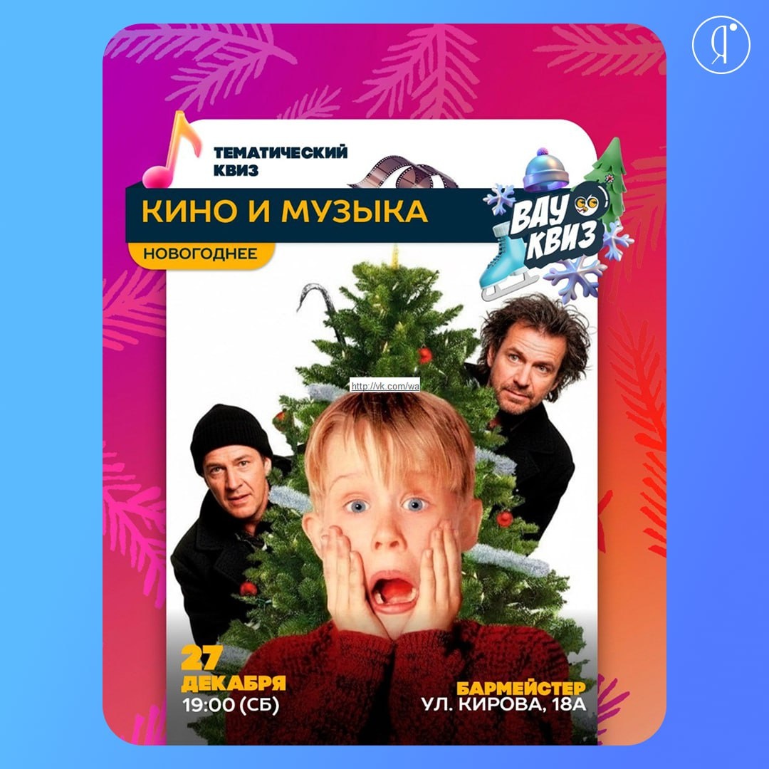 ) #Квизы #Вечером Самый-самый новогодний фильм? Самая-самая новогодняя песня? Запомните первые ответы, которые пришли в голову, и проверьте — встретятся ли они на ближайшем киномузыкальном квизе. Про сказочных существ тоже вспомним и даже блеснем эрудицией: в формате «Проще некуда» с этим обычно нет проблем 😉 Эта игра станет приятным сюрпризом для вас и всей команды: несложно, интересно и атмосферно! В команде от 2 до 8 участников 27 декабря | 19:00 Barmeister, Кирова, 18А, 2 этаж 600 руб. +79644180983 Online Якутия | Ждем вас в МАХ