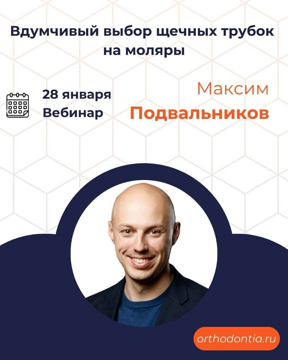 ! Приглашаем вас на вебинар «Вдумчивый выбор щечных трубок на моляры», который проведёт Подвальников Максим Сергеевич. 🗓 Дата, место: 28 января 2026, онлайн Программа вебинара: Погружаемся в тонкости выбора щечных трубок, чтобы повысить точность, предсказуемость и комфорт работы. Основные темы: 1️⃣ Щечные трубки на моляры: — одиночные (для одной дуги) — двойные/тройные (для 2–3 дуг) — самолигирующие — смещённые к десне 2️⃣ Три ключевых параметра: торк, ангуляция, ротация (дистальное отклонение) 3️⃣ Принципы правильного выбора: что, куда и зачем 4️⃣ Щечные трубки и новинка Damon Ultima: как совмещать 5️⃣ Ответы на вопросы участников Выбор щечной трубки для конкретного моляра — так же важен, как правильный торк брекета. Это делает работу врача комфортнее, ускоряет лечение и обеспечивает качественный результат. Стоимость: бесплатно Регистрируйтесь сейчас и выходите на новый уровень своей работы 👈