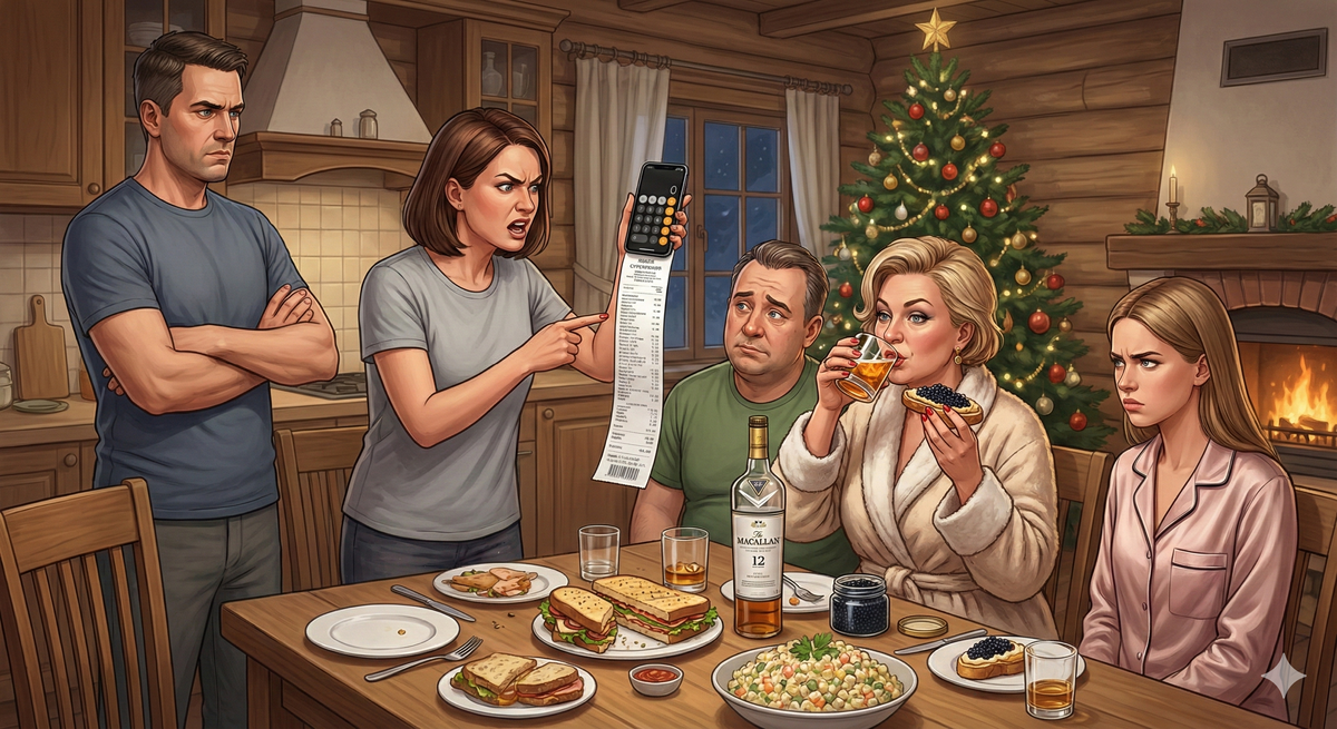 β ΠΡΠΎΠ³ΠΎ, β ΡΠ΅Π·ΡΠΌΠΈΡΠΎΠ²Π°Π»Π° Ρ, Π³Π»ΡΠ΄Ρ Π½Π° ΠΈΡΠΎΠ³ΠΎΠ²ΡΡ ΡΠΈΡΡΡ. β ΠΡΠΎΠ΄ΡΠΊΡΡ, ΠΊΠΎΡΠΎΡΡΠ΅ ΠΌΡ ΡΠ΅Π°Π»ΡΠ½ΠΎ Π΅Π»ΠΈ ΠΈ ΠΏΠΈΠ»ΠΈ, ΡΡΠΎΡΡ 5 400 ΡΡΠ±Π»Π΅ΠΉ. ΠΠ΅Π»ΠΈΠΌ Π½Π° ΡΠ΅ΡΡΠ΅ΡΡΡ , ΡΠ°ΠΊ ΠΊΠ°ΠΊ ΠΊΡΡΠΈΡΡ Π΅Π»ΠΈ Π²ΡΠ΅. ΠΠΎΠ»ΡΡΠ°Π΅ΡΡΡ ΠΏΠΎ 900 ΡΡΠ±Π»Π΅ΠΉ Ρ ΡΠ΅Π»ΠΎΠ²Π΅ΠΊΠ°. Π‘ Π½Π°Ρ Π΄Π²ΠΎΠΈΡ β 1 800 ΡΡΠ±Π»Π΅ΠΉ.