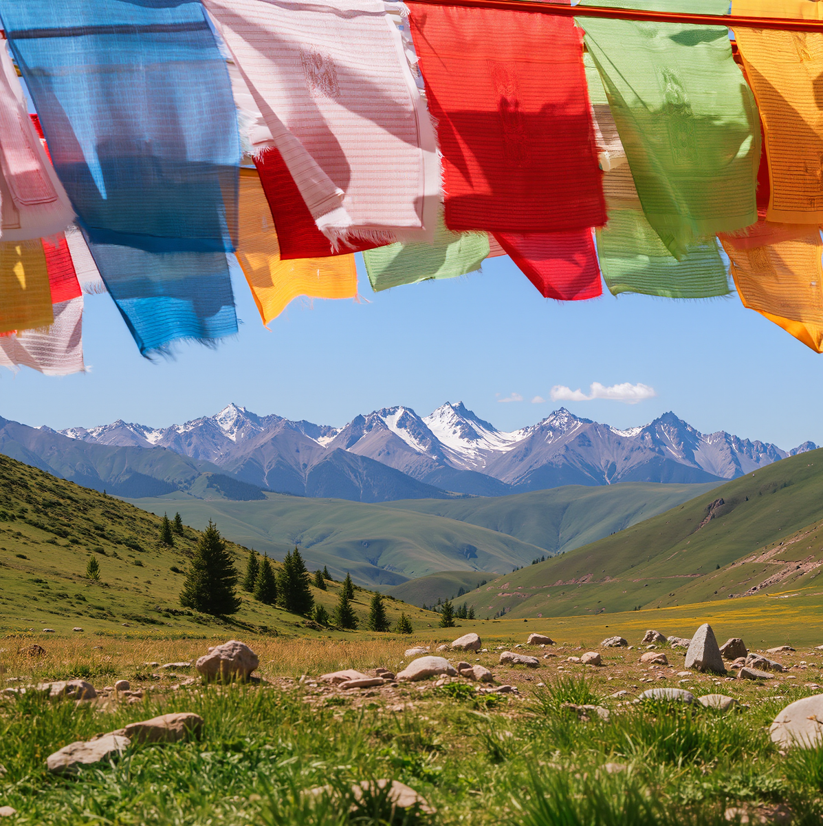 Молитвенные флажки («лунгта», или «кони ветра») — это не просто украшение, а духовный инструмент: колыхаясь на ветру, они распространяют благостную энергию.
