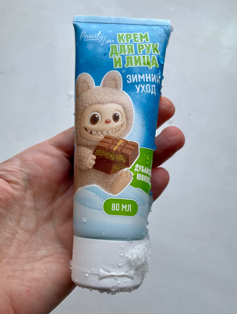 И вот моё внимание привлек крем. А все потому,тчто на нём был рисунок самой популярной игрушки 2025 года – лабубы или как там этого зубастики зовут.