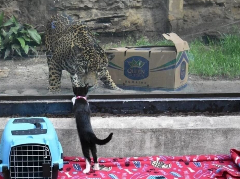 Следующей остановкой стал вольер с гепардами. Трёхмесячный котёнок Смоки — чёрно-белый красавчик с изумрудными глазами — буквально прилип носом к стеклу, разглядывая пятнистую хищницу. Гепард Амара подошла так близко, что между ними оставалось лишь несколько миллиметров прозрачной преграды. И в тот момент Амара начала мурлыкать. Звук получился настолько громким, что его услышали даже люди, стоявшие в нескольких метрах от вольера.