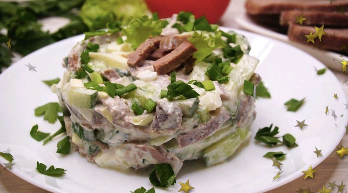 ? Обожаю разные вариации этого салата, и сегодня хочу поделиться изысканной интерпретацией классики: Оливье с языком. Этот салат получается невероятно нежным, богатым белком, что делает его и сытным, и полезным. Идеальный вариан и конечно никакой колбасы 😋 ИНГРЕДИЕНТЫ: ❤️ Отварной говяжий язык — 200-250 г 🫛 Молодой замороженный зелёный горошек — 150 г 🥚 Яйца — 2 шт. 🥑 Авокадо — ½ шт. 🥕 Морковь — 1 шт. (небольшая) 🥒 Огурцы свежие — 2 шт. Для заправки: греческий йогурт, горчица, желток отварного яйца, соль, перец. 👩🍳 ПРИГОТОВЛЕНИЕ: 🟢Язык отварить до мягкости, остудить и очистить. Нарезать аккуратным кубиком. 🟢Яйца и морковь отварить, остудить, также нарезать кубиком. 🟢Авокадо и огурцы очистить и нарезать. 🟢Горошек — не варим, а просто размораживаем при комнатной температуре. Так он сохранит яркий цвет, хруст и сладость! 🟢Приготовить лёгкую заправку: смешать греческий йогурт с чайной ложкой горчицы, добавить размятый вилкой желток, соль и перец по вкусу. 🟢Акку