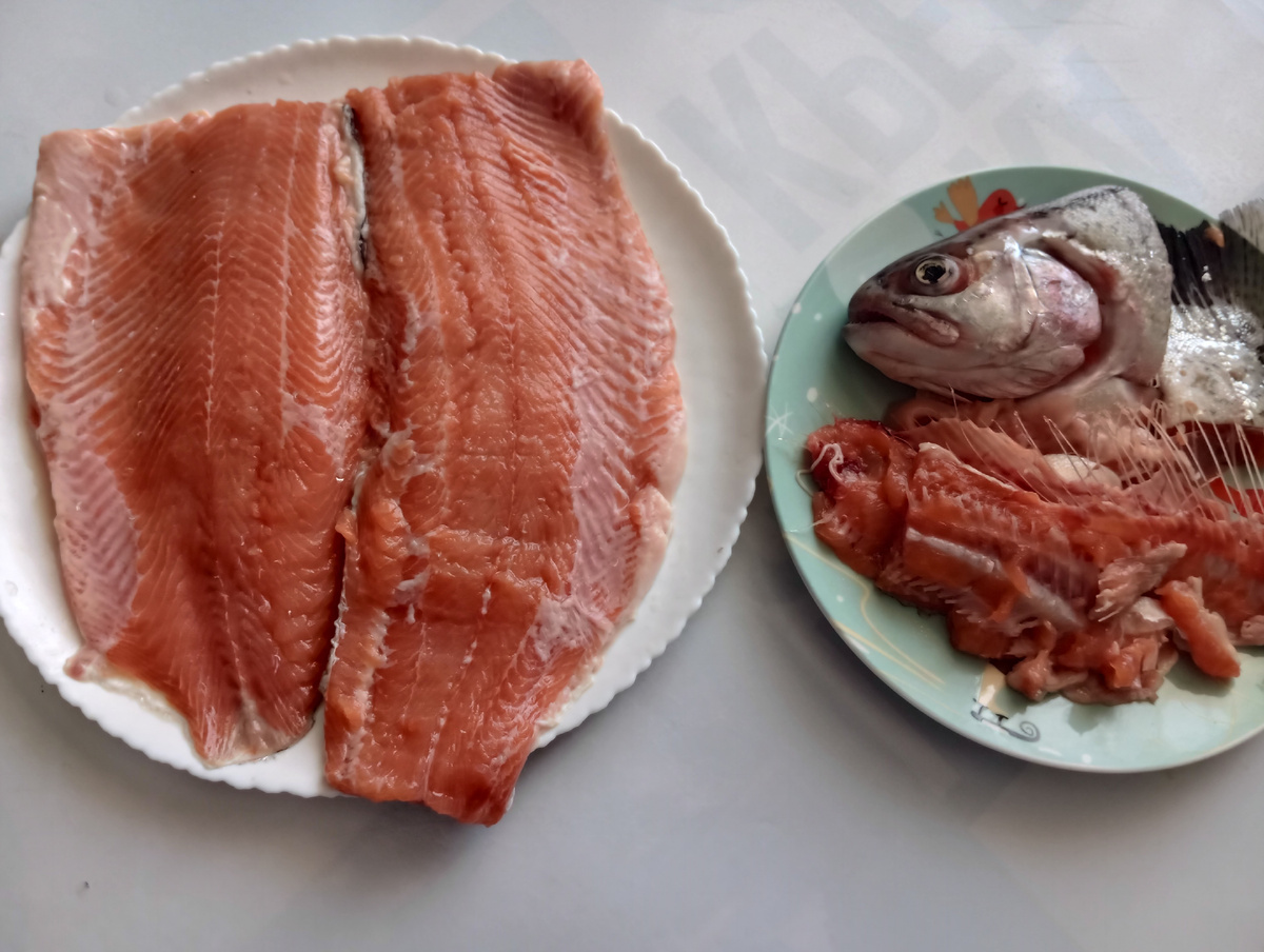 Например посолила форель, которую сын преподнёс перед Новым годом.