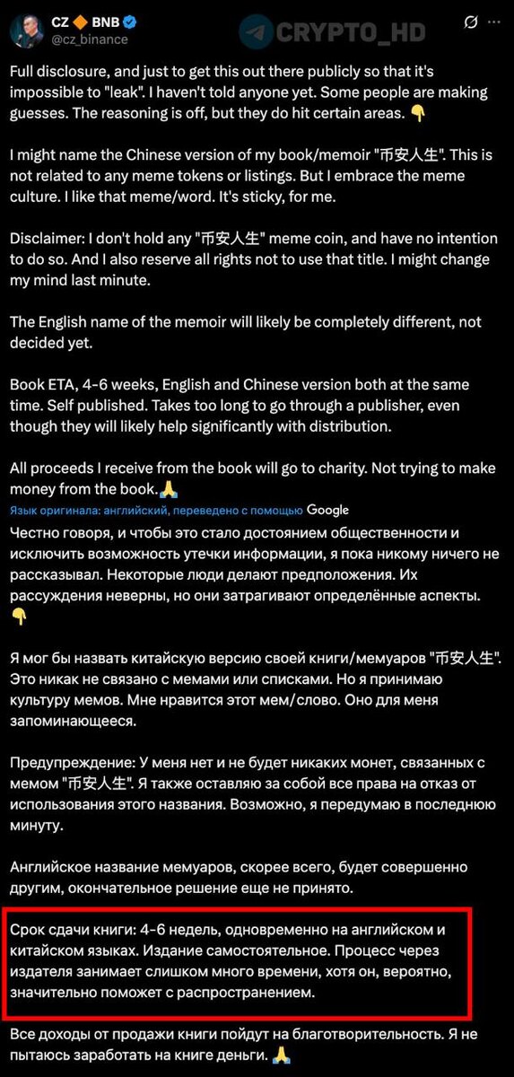 📖 СZ собирается выпустить собственную книгу «币安人生» (Binance Life) в течение 4-6 недель…