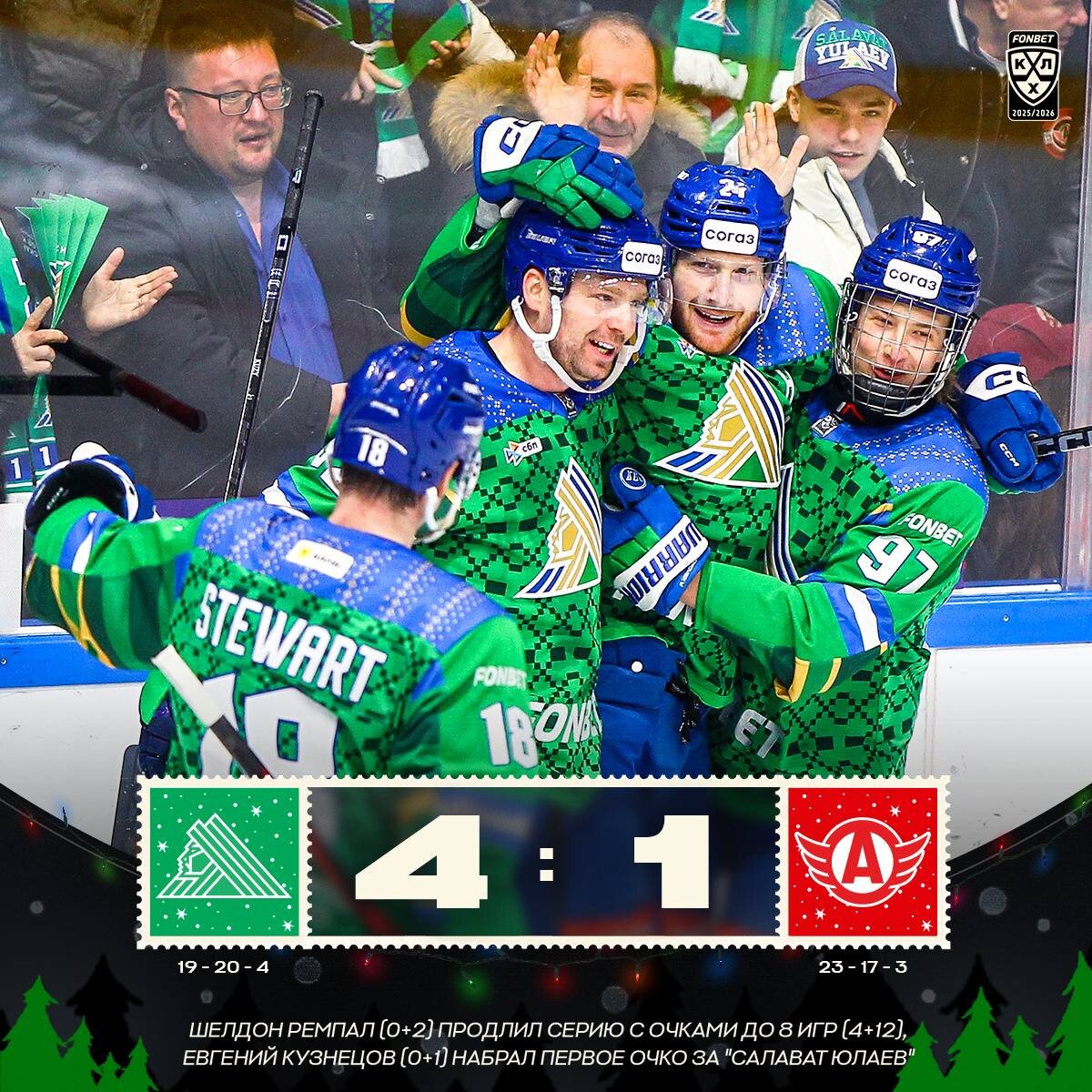 💚 Четвёртая победа «Салавата Юлаева» в последних пяти матчах!