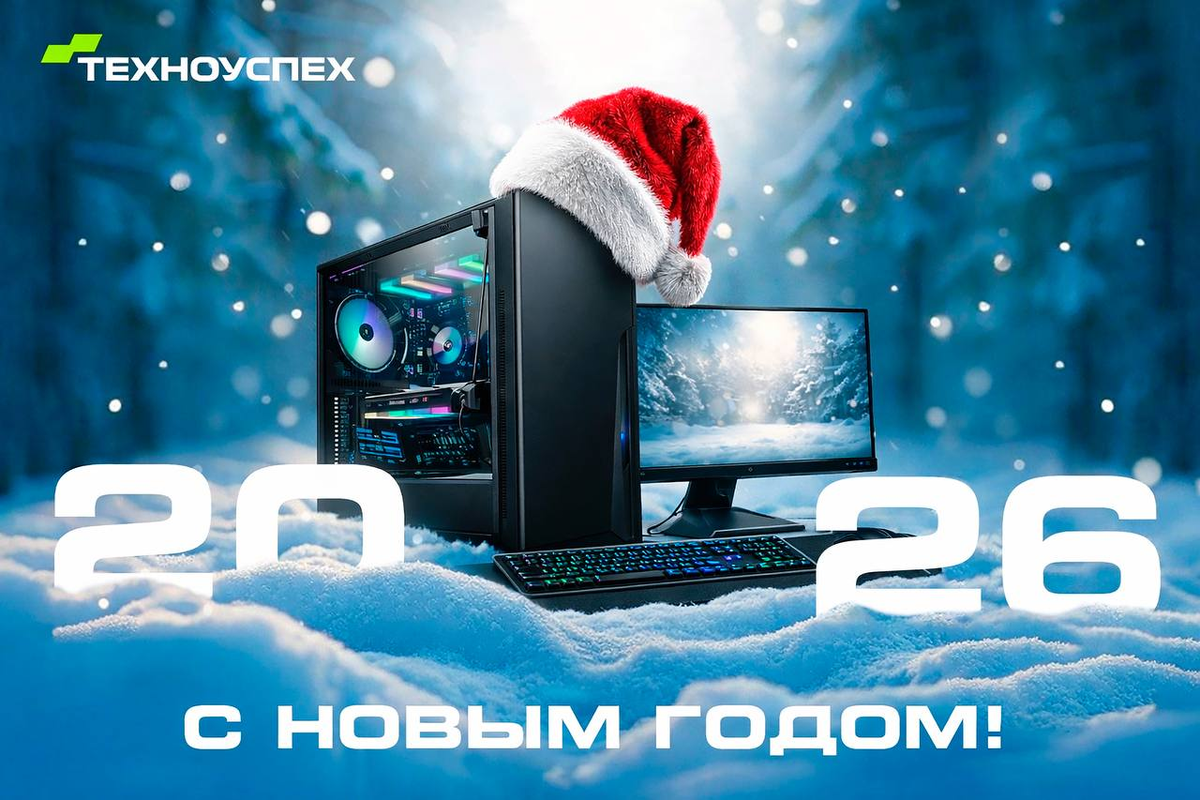 Дорогие клиенты! 😎Команда Техноуспех от всей души поздравляет с этим волшебным праздником. Пусть все ваши начинания успешно реализуются и приносят рост, развитие и достойные результаты. Пусть 2026 год откроет перед вами новые горизонты, укрепит партнёрства и принесет множество ярких моментов. 😎 Благодарим вас за выбор и доверие к компании Техноуспех. В новом году мы продолжим удивлять вас сервисом и доступными ценами, которые приведут ваш бизнес на новый уровень! 😎С наилучшими пожеланиями, Команда Техноуспех. С Новым годом !