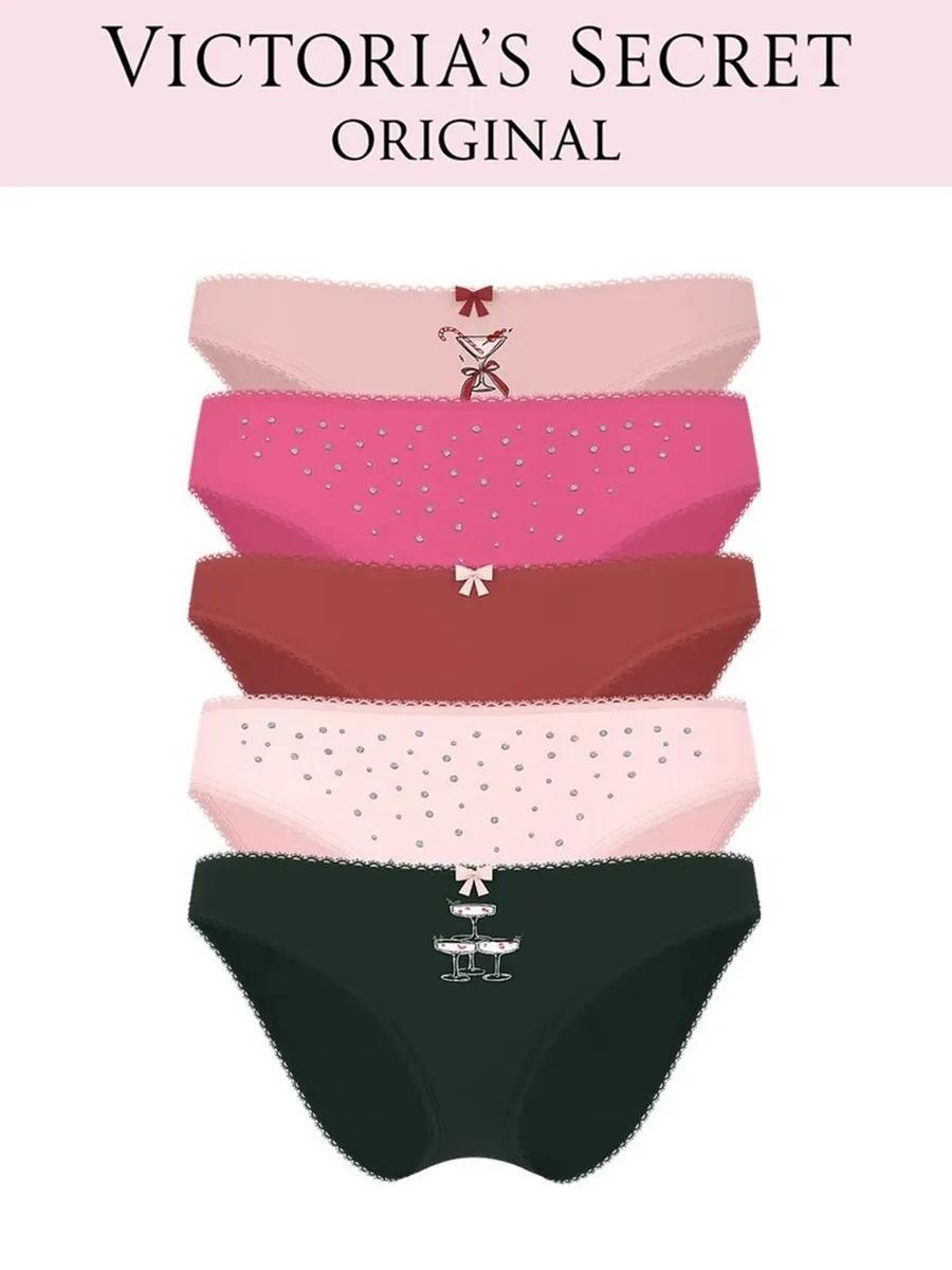 Набор трусов Victorias Secret L комплект из 5 трусов-бикини с отделкой из кружева светло-розовые и темно-розовые со стразами, красные