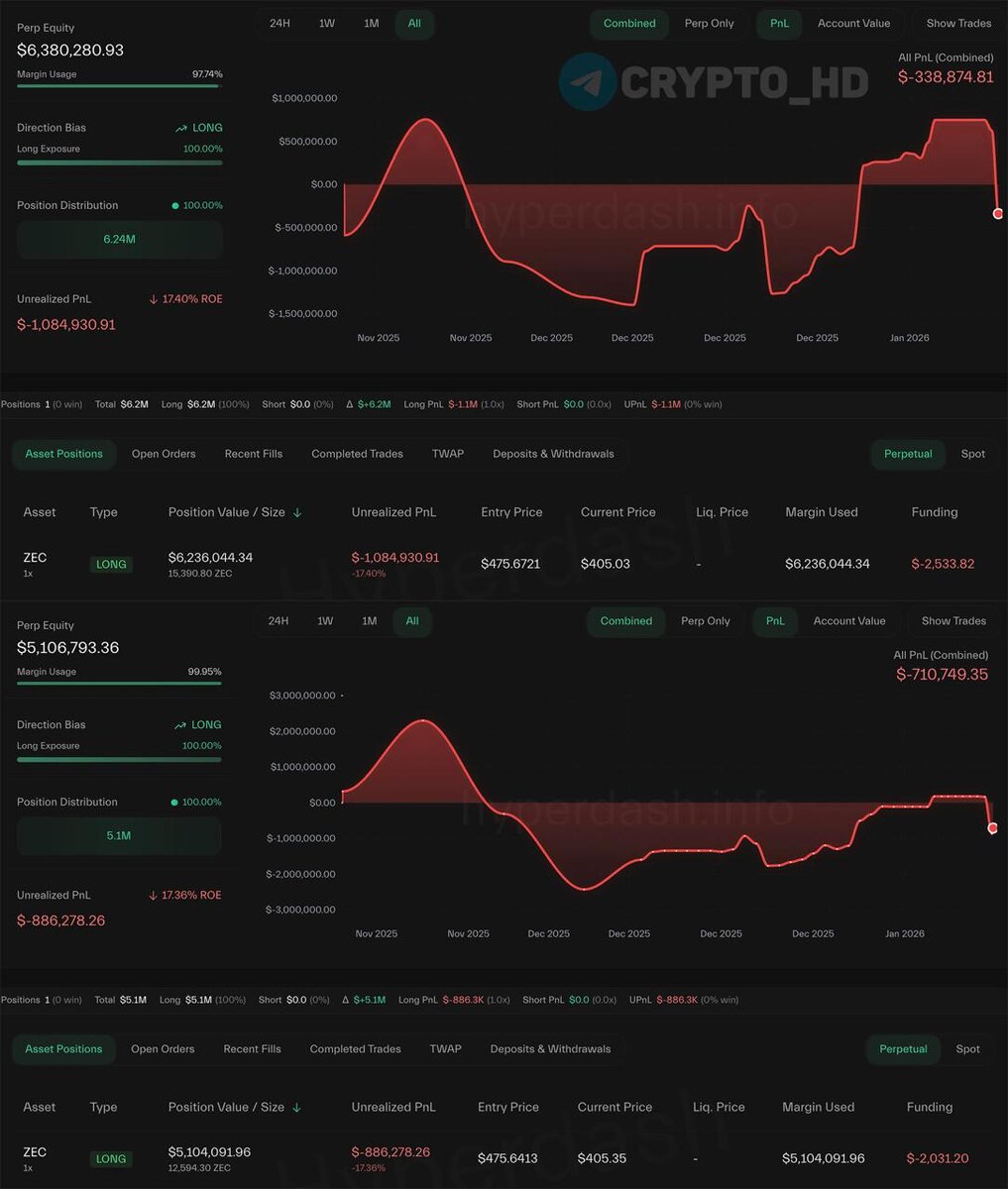 ΠΡΠ΅ΡΠ° Π΄Π²Π° ΠΊΠΈΡΠ° (Π²Π΅ΡΠΎΡΡΠ½ΠΎ, ΠΎΠ΄ΠΈΠ½ ΠΈ ΡΠΎΡ ΠΆΠ΅ ΡΡΠ΅ΠΉΠ΄Π΅Ρ) Π·Π°Π»Π΅ΡΠ΅Π»ΠΈ Π² Π»ΠΎΠ½Π³ΠΈ ΠΏΠΎ #ZEC Π½Π° $11,000,000. Π Π΅Π·ΡΠ»ΡΡΠ°Ρ β ΡΠ΅ΠΉΡΠ°Ρ ΠΌΠΈΠ½ΡΡ ΠΏΠΎ ΡΡΠΈΠΌ ΠΏΠΎΠ·ΠΈΡΠΈΡΠΌ ΡΠΎΡΡΠ°Π²Π»ΡΠ΅Ρ ΠΏΠΎΡΡΠΈ $2,000,000. Zcash -23% Π·Π° ΡΡΡΠΊΠΈ. ΠΠΎΡΠ΅Π»ΡΠΊΠΈ: 1, 2 Π Π°Π½Π΅Π΅: ΡΠ°ΡΠΊΠΎΠ» Π² ΠΊΠΎΠΌΠ°Π½Π΄Π΅ Crypto Headlines