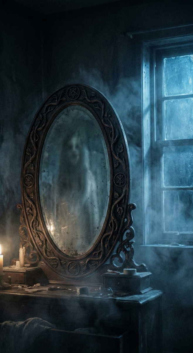 Старушка открыла дверь, впустила в квартиру, полную старых вещей. Зеркало стояло в углу, прикрытое тканью. Когда она сняла ткань, я сразу почувствовал странный запах — как от сырой земли.