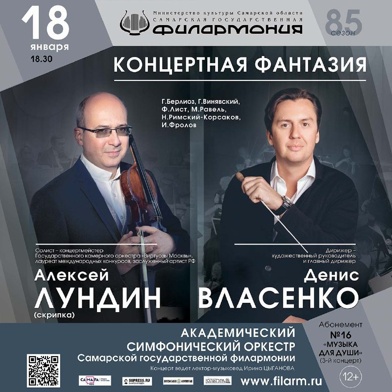 Самарская филармония представляет вечер классической музыки с программой «Концертная фантазия». На сцене выступит первая скрипка «Виртуозов Москвы» Алексей Лундин и Академический симфонический оркестр под управлением Дениса Власенко. 📅 18 января (воскресенье) 📍 Самарская филармония, ул. Фрунзе, 141 Подробная афиша и билеты (доступны по Пушкинской карте) #концерты #навыходных 👉 куда ещё сходить в Самаре