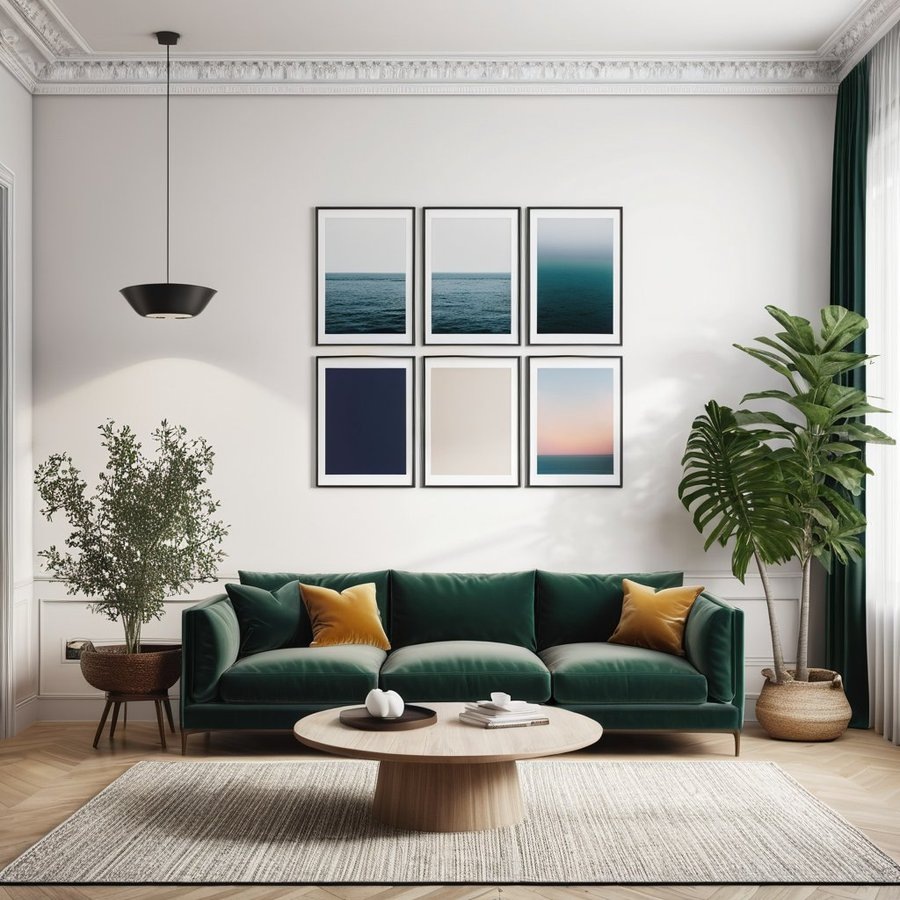 При создании коллажей из картин и постеров стоит учитывать не только цветовую палитру, но и композиционные принципы. Сочетание различных форматов - вертикальных и горизонтальных работ - помогает создать динамику. Размещение объектов в группе по диагонали или в виде треугольников добавляет интерес и объем. Чтобы избежать визуального перегруза, лучше использовать 3-5 произведений искусства, придерживаясь единого стиля и тематики.