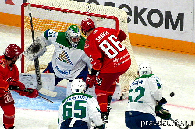 Хоккеисты «Автомобилиста» провели в Уфе очередной матч чемпионата КХЛ. Екатеринбуржцы встречались с «Салаватом Юлаевым» и продлили серию поражений до трех игр. В дебюте активнее выглядели «зеленые», но на 4-й минуте остались вчетвером. Однако весомых угроз воротам Семена Вязового гости создать не смогли. После возвращения на лед пятого игрока инициатива снова перешла к уфимцам, а на 9-й минуте счет был открыт. Затяжная атака «Салавата» завершилась удачной игрой Сергея Варлова на добивании. Екатеринбуржцы постарались быстро отыграться и провели пару атак, а на 15-й минуте отправили шайбу в ворота хозяев. Но арбитры после видеопросмотра гол отменили, указав, что Кертис Валк действовал высоко поднятой клюшкой. Всего через полминуты после этого эпизода «Салават» упрочил свой перевес. Артем Горшков выскочил на пятак и с близкого расстояния прошил Никиту Новоселова. Практически сразу «Автомобилист» еще и остался в меньшинстве, и хозяева быстро разыграли «лишнего». Джек Родуолд довел счет до
