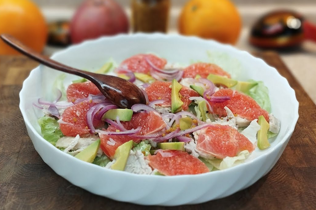 Салат с креветками, авокадо и грейпфрутом: яркий вкус для тех, кто любит необычные сочетания Этот салат приятно удивляет с первой вилки. В нём гармонично сочетаются сладкие, солёные, кислые и лёгкие пряные нотки. Вкус получается настолько сбалансированным, что кажется, будто это блюдо из хорошего ресторана, хотя готовится оно дома и достаточно быстро. Такой салат отлично подойдёт для лёгкого ужина, красивой подачи гостям или просто для того, чтобы порадовать себя чем-то особенным. Главный акцент здесь — креветки. Именно они задают характер всему блюду, поэтому лучше выбирать крупные и качественные. Сочные дольки грейпфрута добавляют свежесть и лёгкую кислинку, авокадо делает текстуру нежной и кремовой, а эстрагон и шалот придают изысканный аромат. Подготовка креветок