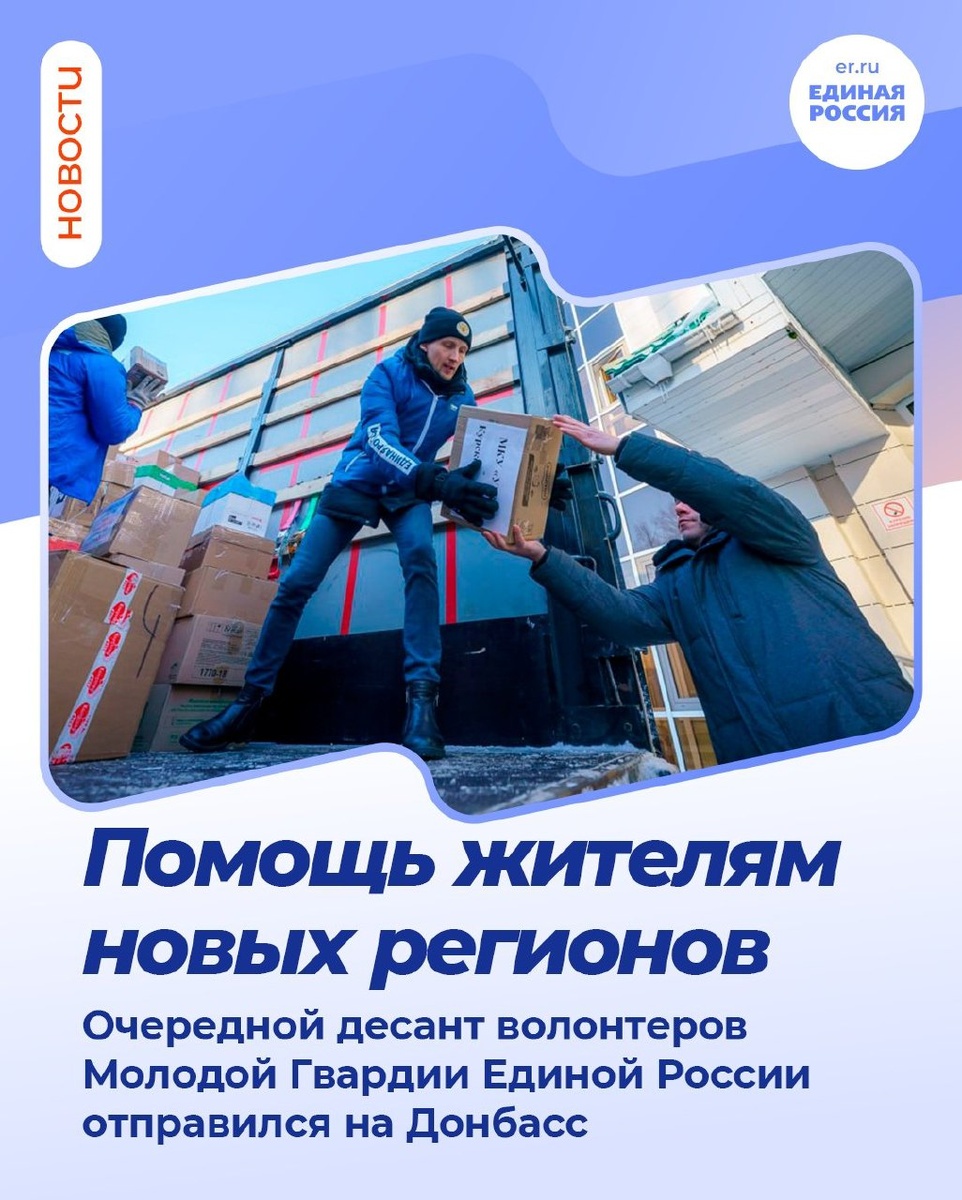 В ЛДНР, Запорожскую и Херсонскую области отправился 106-й отряд волонтёров. Добровольцы поздравят жителей с Рождеством, организуют праздничные мероприятия для детей, проведут творческие мастер-классы и вручат подарки. 🔹 Волонтёры также продолжат оказывать адресную гуманитарную помощь, работать в медицинских учреждениях, помогать в расчистке снега и участвовать в восстановлении жилой инфраструктуры. #ЕдинаяРоссия #МГЕР #своихнебросаем #zамир
