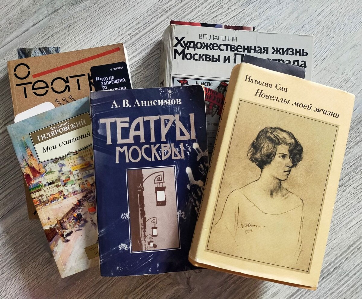 🤭 Давно хочу рассказать про свою "систему" чтения нескольких книг одновременно. Мне она кажется рабочей и в смысле количества, и в смысле качества. Обычно я читаю одновременно 3-4 книги. Из них несколько на одну тему, одна что-то совсем другое и одна аудиокнига (как правило, художественная). Из них толстые и тяжелые для дома, маленькие и легкие - для метро и электрички. В этот раз что-то пошло не так🤦 5 книг на одну тему (ну и всегда какая-нибудь аудиокнига). Вышло так, что они не просто на одну тему, они здорово дополняют друг друга. Например в "Театрах Москвы" я читаю про ТЮЗ, что весной 1921 года Наталия Сац добилась передачи здания заброшенного бывшего кинотеатра "Арс" нарождающемуся театру для детей. А уже из воспоминаний самой Наталии узнаю, как она ходила по весенней промозглой Москве в старых калошах, искала хоть какое-то помещение для театра (к слову, было ее всего 18 лет) и наткнулась на заброшку на Тверской, 61. Тут же познакомилась со сторожем, осмотрела помещение, выя