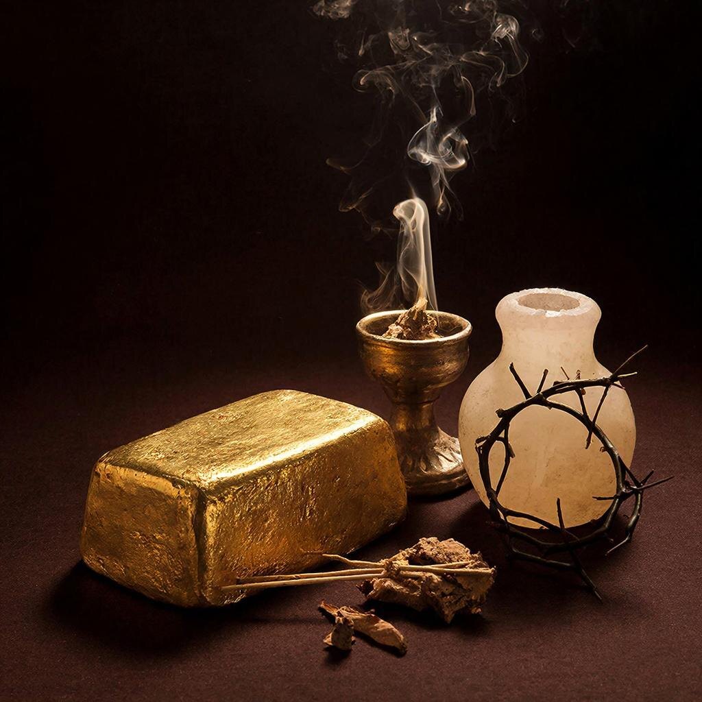 Три принесённых волхвами дара — золото, ладан (ливан) и смирна — с древнейших времён понимались Церковью не как случайные или просто ценные приношения, а как пророческое и символическое откровение о личности и служении Младенца Христа.