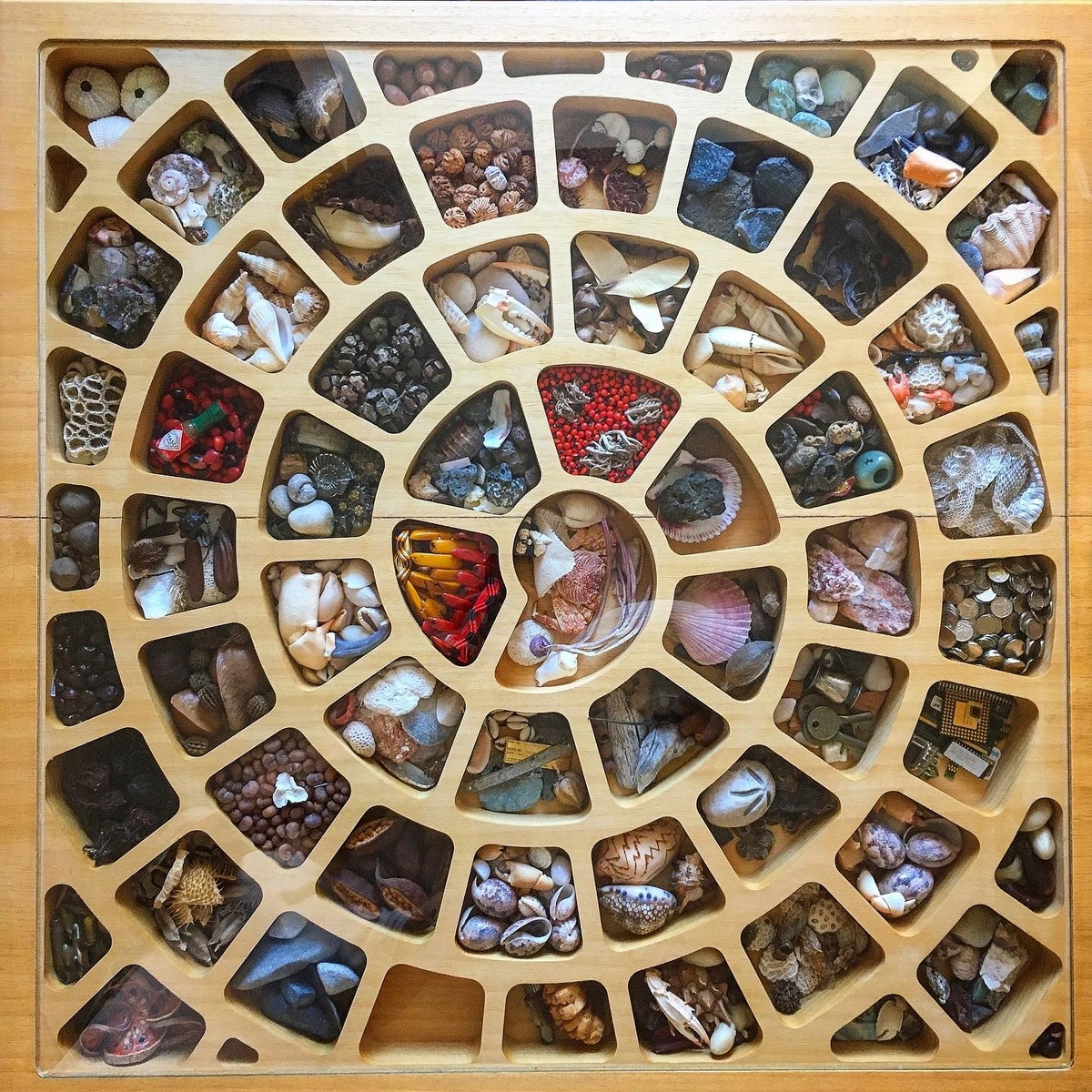 Обычное дело - привезти домой из путешествия памятный сувенир. Далее возникает проблема - куда это девать дома? Очень часто такие памятные безделушки, камешки, кусочки кораллов, засушенные жуки и цикады, ракушки и семена навсегда оседают в глубинах ящиков, коробок и на дальних полках. Я придумал решение. Массивная столешница с глубокими выфрезерованными ячейками, в которых можно разложить все «трофеи». В качестве материала я выбрал «африканскую липу» - абачи. Да и просто на момент реализации не видел других доступных вариантов толщиной 60-80мм. Сверху всё закрывается 6мм закаленным стеклом. Все «экспонаты» с отличным обзором, не пылятся, в полной сохранности, при необходимости можно открыть «витрину», переложить, добавить новое. Меня спрашивали - «а почему не залить эпоксидкой?» Мне не нравилась идея полностью зафиксировать экспозицию, ни добавить, ни убрать. Под стеклом вещи могут пролежать очень долго и никак не пострадать. Что будет с эпоксидкой через десятилетия - никто не скажет.