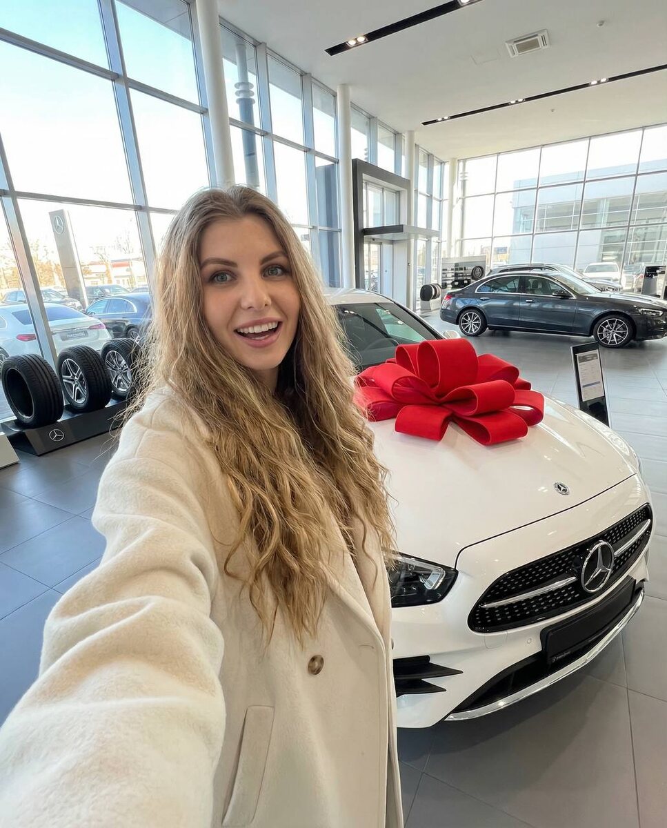 : 1. Заходим в этот бот 2. Нажимаю - Нейросети 🧠 3. Нажимаю - Nano banana 🍌 4. Нажимаю - Nano banana pro 5. Нажимаю - 4К 6. Добавляю фото или несколько фото и вставляю этот промт 👇 Создай селфи, не меняя черты лица. Фотография молодой женщины с очень длинными волнистыми волосами, в оверсайз молочном пальто, которая стоит в автосалоне и в восторге смотрит в камеру, делая селфи. Перед ней стоит новый белоснежный автомобиль Mercedes-Benz E-Class с огромным красным подарочным бантом на капоте. Освещение мягкое, интерьер современного дилерского центра с панорамными окнами, на заднем плане видны шины. Высокая детализация, реализм, 8k.