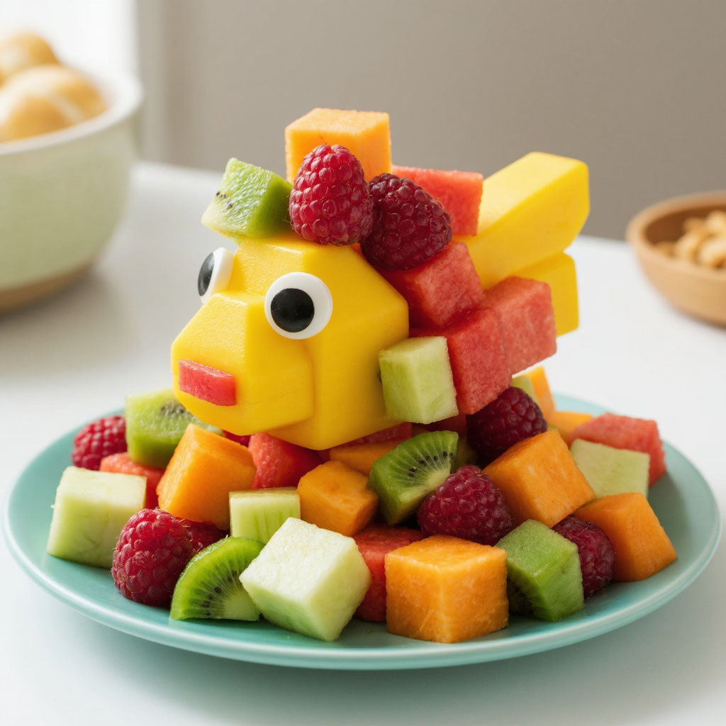 Это блюдо превращает обычную нарезку фруктов в конструктор. Ребёнок сможет сам собирать «конструкции» из кусочков фруктов, что сделает завтрак интерактивным и увлекательным.