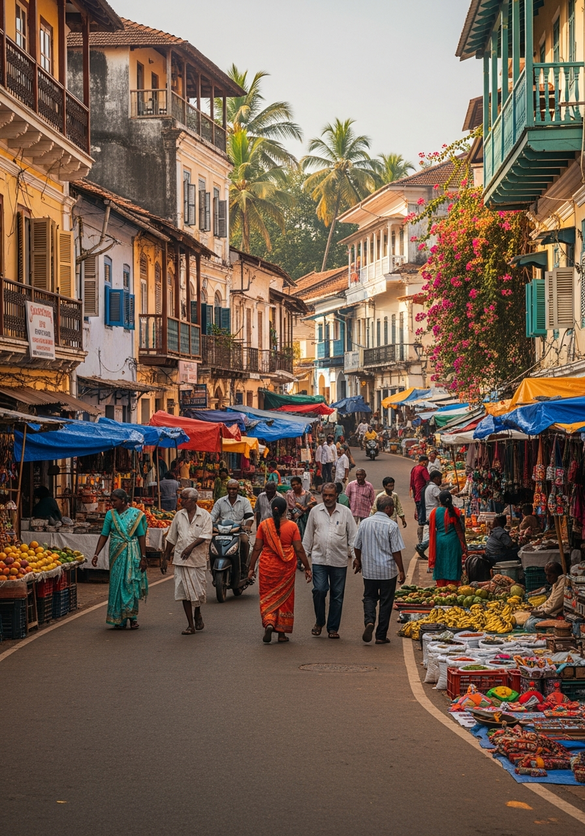 Португальские особняки Маргао — архитектурные свидетели колониальной эпохи с изящными балконами и расписными изразцами. Прогулка по старым кварталам переносит в XVIII век, когда здесь правили богатые землевладельцы.